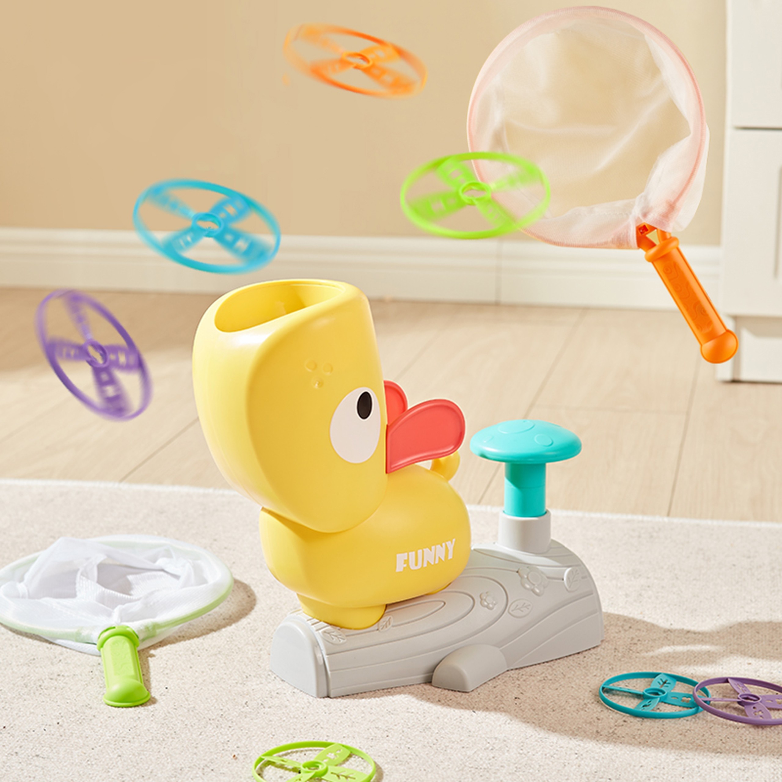 Detská hra s odpaľovačom diskov od spoločnosti WOOPIE je ideálnym riešením na spoločnú zábavu pre celú rodinu! Táto hra je založená na obratnosti, koncentrácii a dobrej motorickej koordinácii. Úlohou hráčov je chytiť disk odpálený kačičkou. Čím silnejšie stlačíte tlačidlo, tým vyššie disk vyletí. Vďaka tomu je hra ešte vzrušujúcejšia. Produkt je ideálny pre deti aj dospelých. Hračka je bezpečná, súčasťou sú okuliare s ochranným sklom, ktoré ochránia oči a tvár.