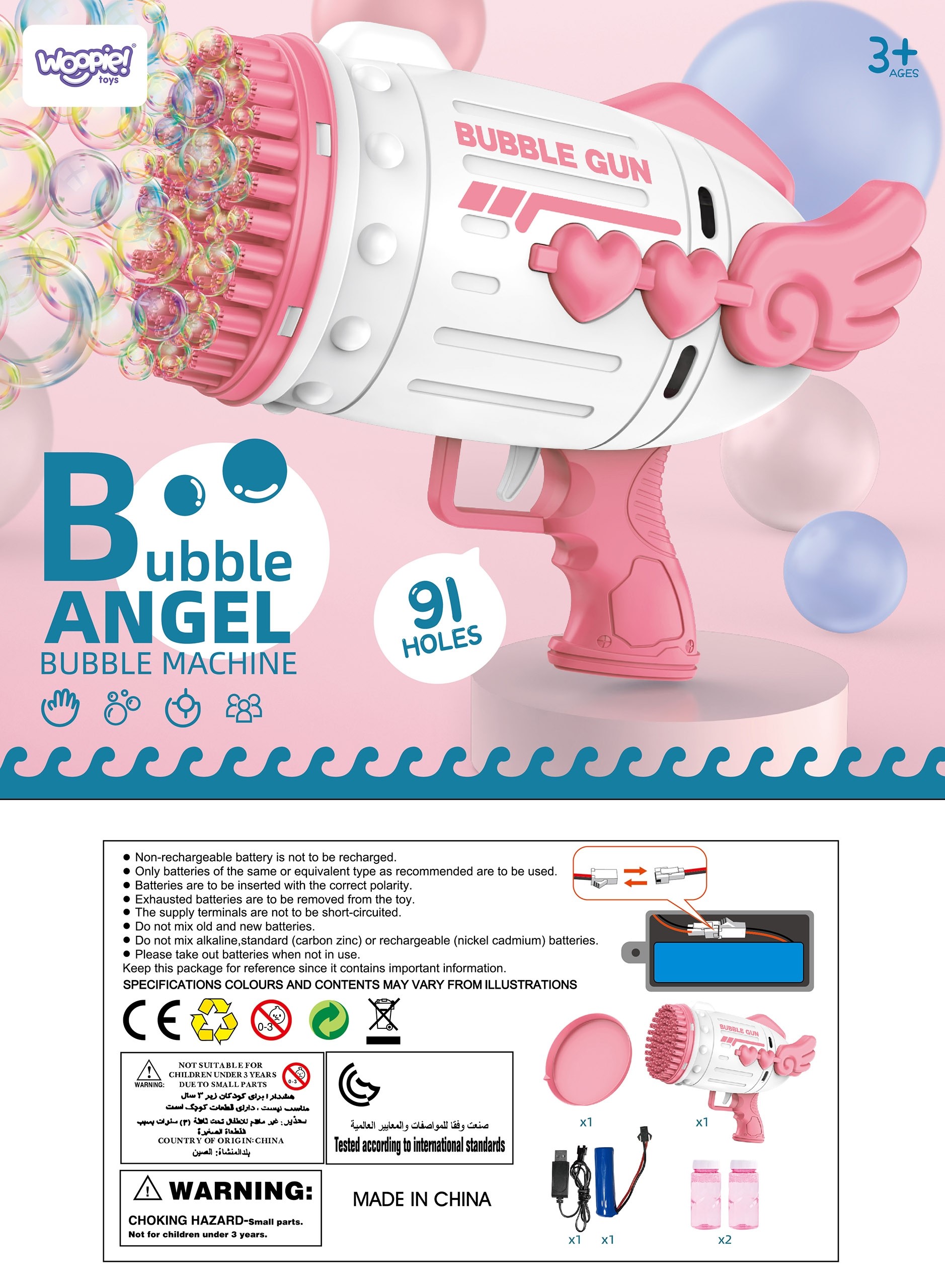 Bublinový prístroj od WOOPIE v tvare pištole je skvelá hračka pre deti. Uvoľňované bubliny sú strieľané vysokou frekvenciou vďaka 91 otvorom. Úžasná pištoľ na výrobu mydlových bublín, ktorá po stlačení spúšte uvoľní množstvo šumivých bublín. Navyše súprava obsahuje 2 nádoby na bublinkovú tekutinu. Hračka je ideálna na hranie vonku alebo doma.