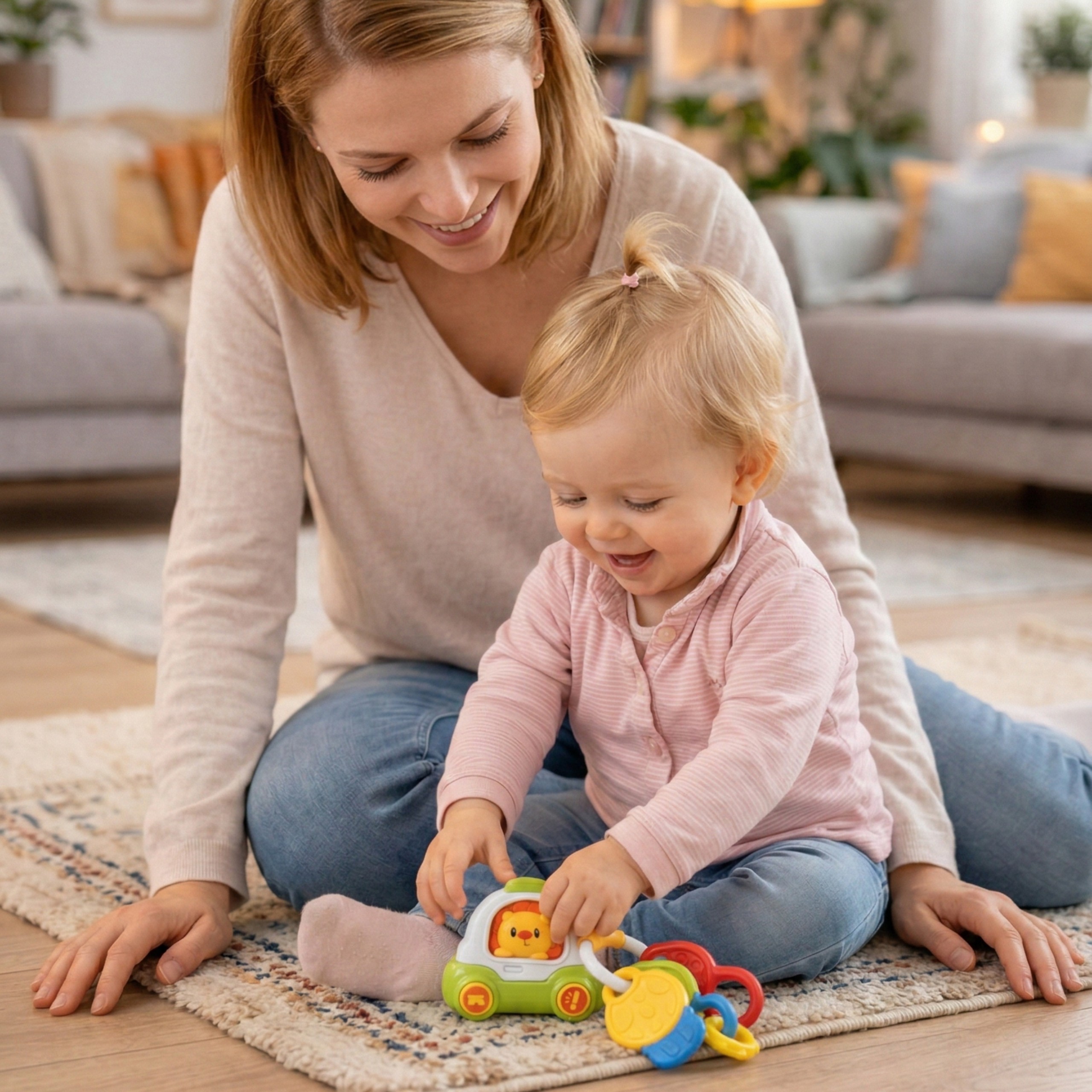 Zoznámte sa s Interaktívnymi kľúčmi od auta 4v1 z kolekcie Woopie Baby! Táto multifunkčná senzorická hračka je navrhnutá špeciálne pre najmenších objaviteľov od 18 mesiacov. Kombinuje v sebe všetko, čo batoľatá milujú: svetlá, zvuky, kľúče na hranie, hrkálku a hryzadlo.