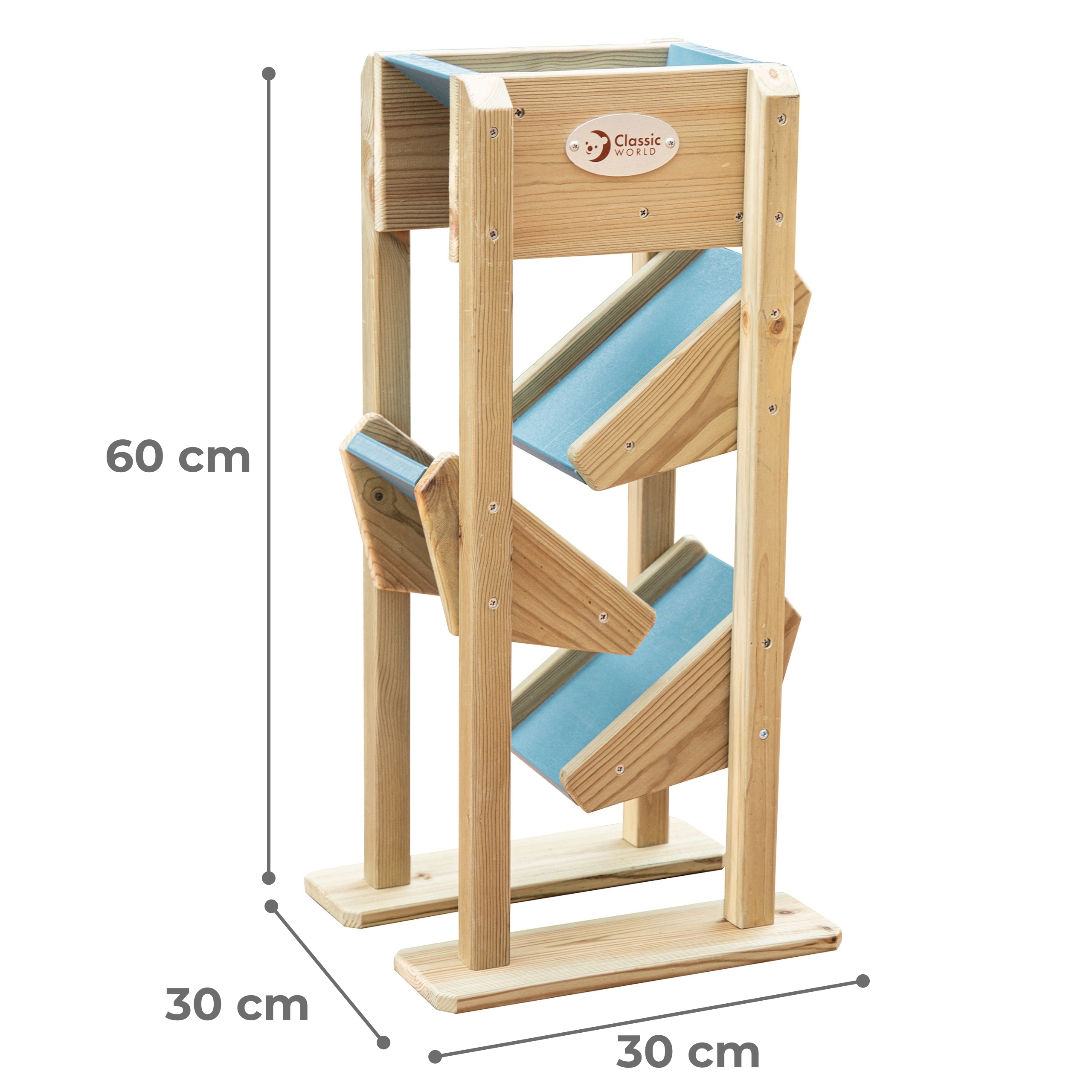 Šmykľavka na piesok od spoločnosti Classic World je dokonalým doplnkom každého pieskoviska! Vyrobené z kvalitného dreva, natreté prírodnou impregnáciou, úplne bezpečné pre deti. Jednoducho naplňte lievik pieskom a sledujte, ako sa sype cez otvor na strmé strany, čím sa vytvorí šmykľavka pre piesok.