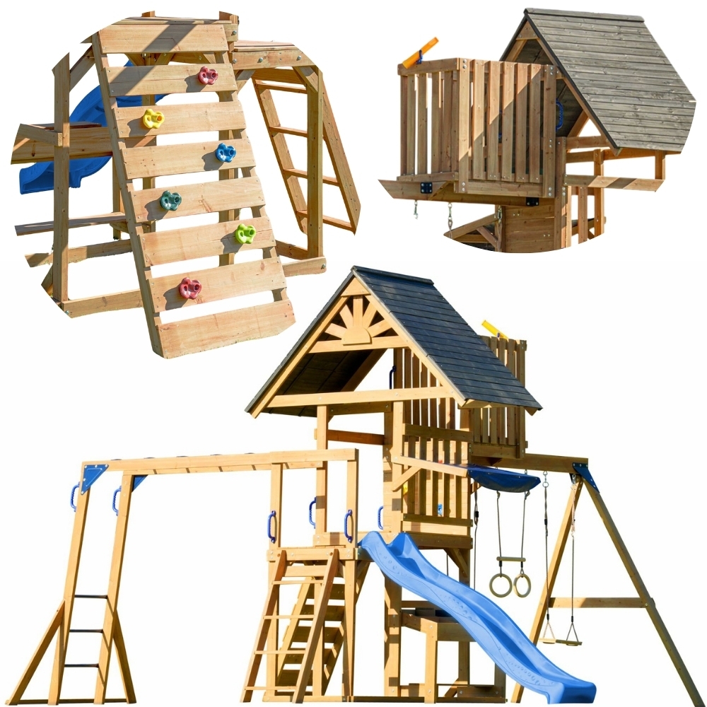 ✔ Multifunkčná herná súprava, ktorá kombinuje hojdačku, šmykľavku, vyhliadkovú vežu, hrazdu a pieskovisko.