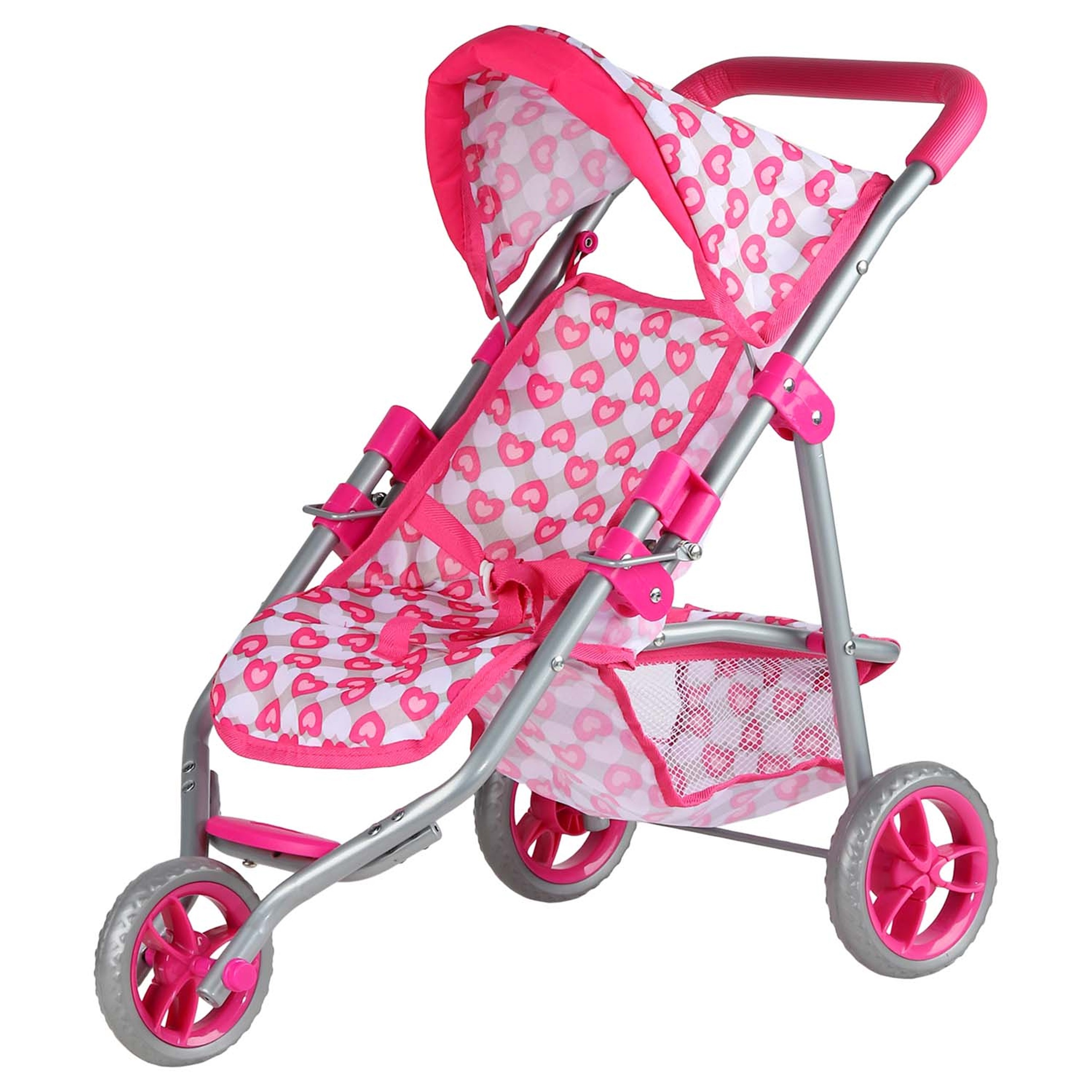WOOPIE ROYAL Ružový Trojkolesový Kočík pre Bábiky so Srdiečkami