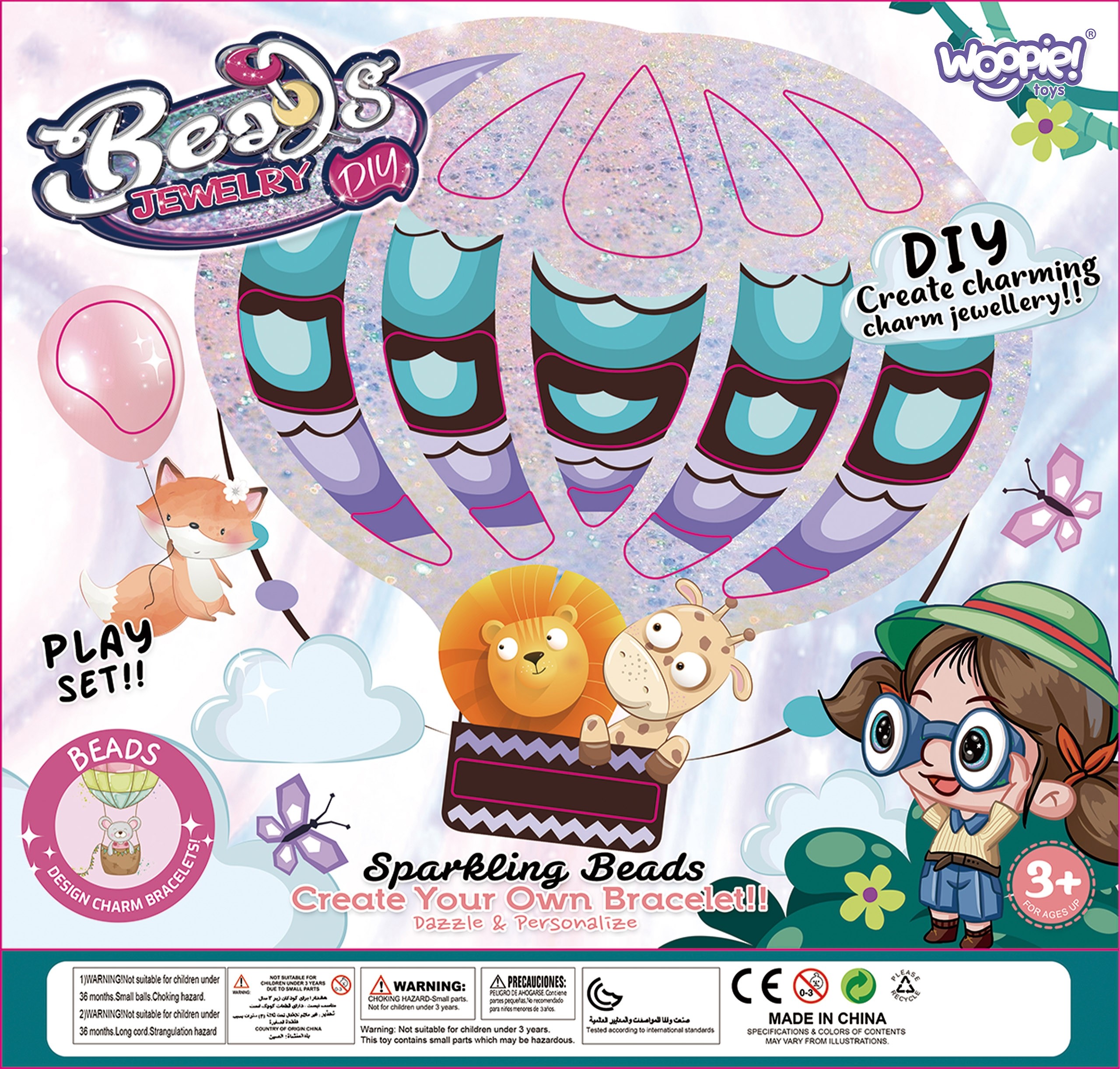Sada na výrobu šperkov od spoločnosti WOOPIE zo série ART&FUN je štýlová, kreatívna a fenomenálna súprava pre každé dievča. Dieťa si môže samo miešať a spájať rôzne korálky a prívesky, aby si tak vytvorilo svoj vlastný jedinečný náramok, prsteň, náušnice alebo prívesok. Sada obsahuje rôzne druhy prvkov: korálky rôznych veľkostí, prívesky, iné prvky a vlasce. Sada je zabalená vo farebnej krabičke, ktorá je ideálna ako darček. Súprava je po rozbalení ľahko prenosná, ľahká a spratná, čo znamená, že si ju dieťa môže bez problémov vziať so sebou do škôlky, ku kamarátovi, na záhradu.