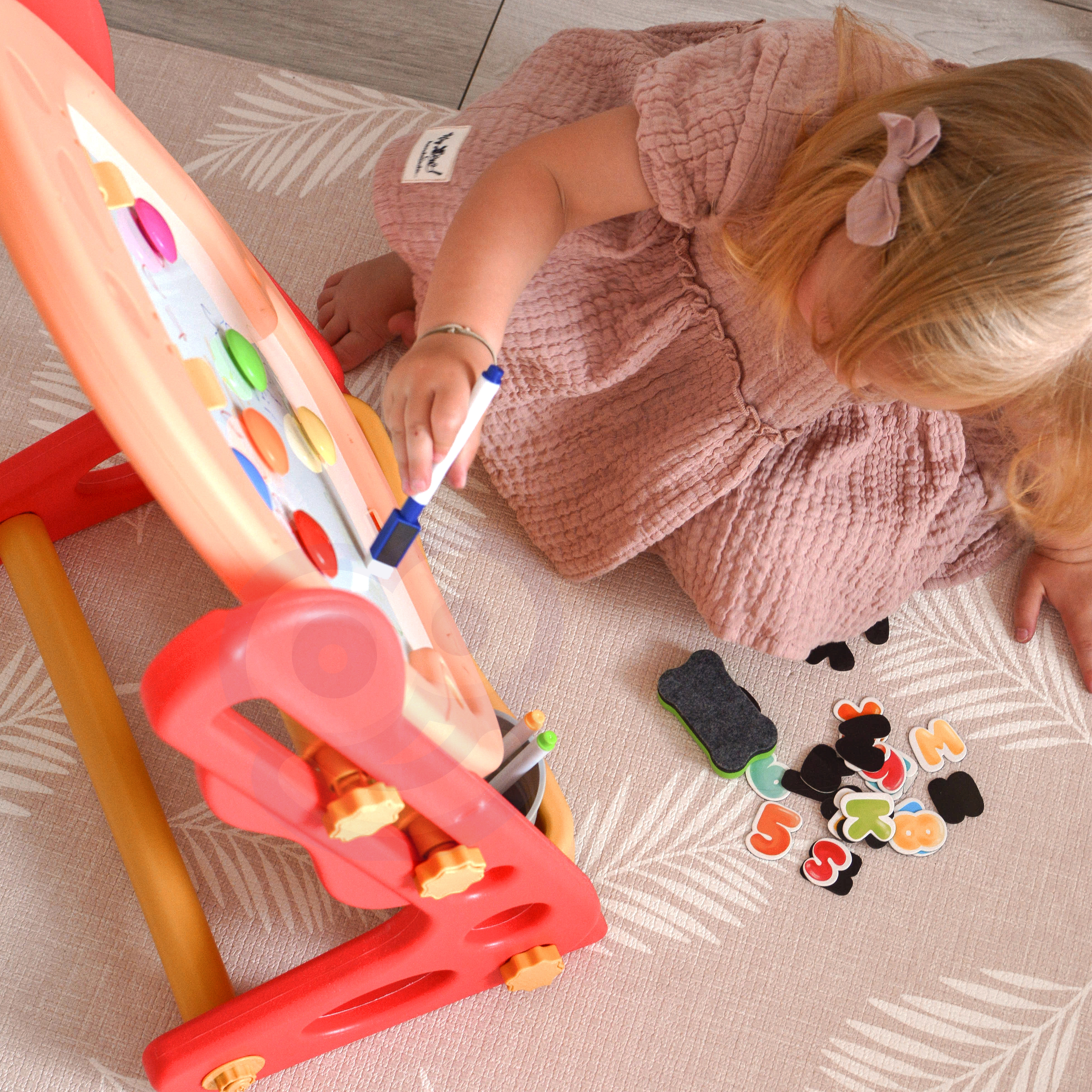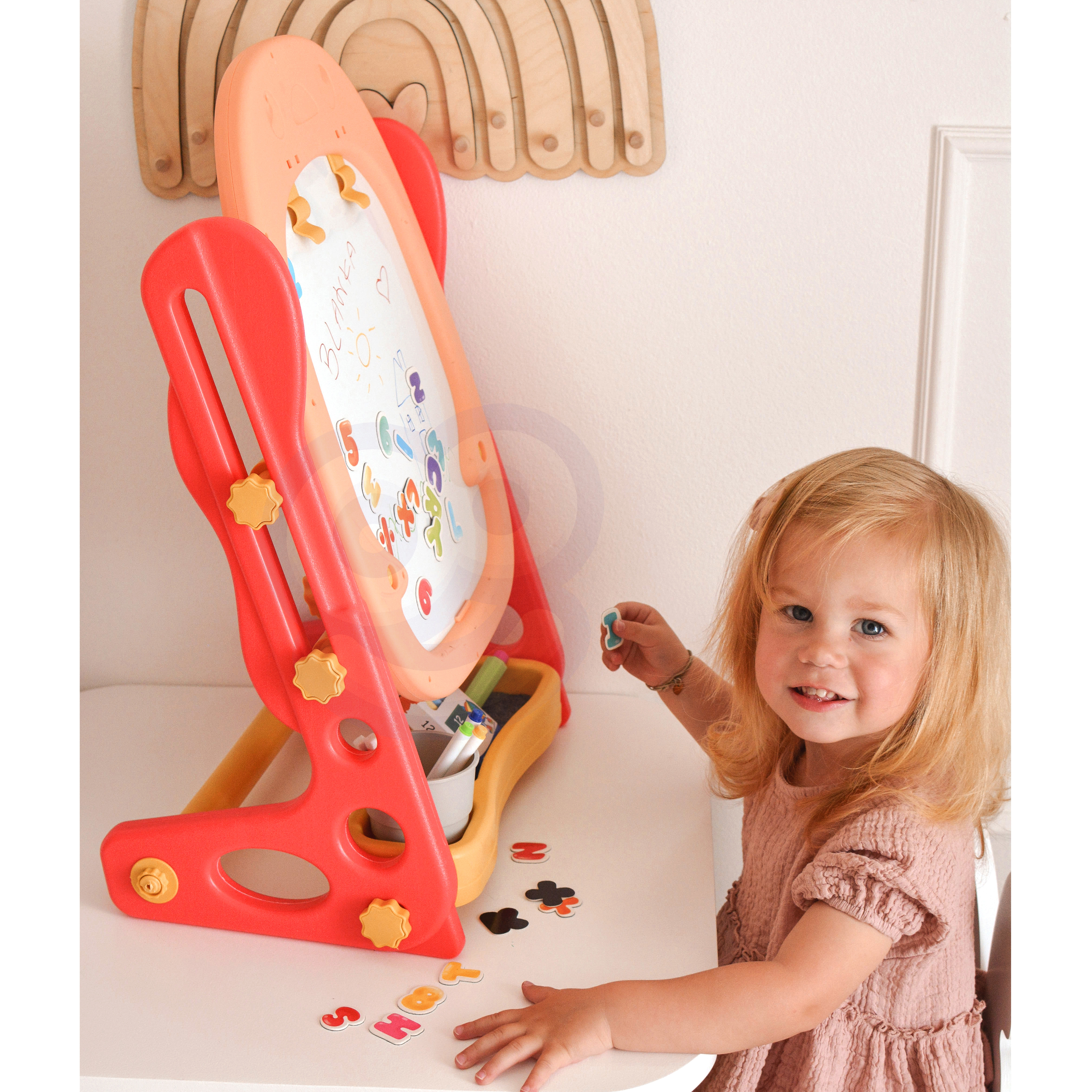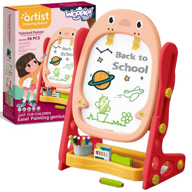 Obojstranná magnetická tabula na kreslenie značky WOOPIE je všestranný nástroj na učenie a rozvoj umeleckých zručností. Sada obsahuje kompletný balík príslušenstva na všestranné využitie. Tabuľa sa jednoducho skladá a je výškovo nastaviteľná, takže sa prispôsobí každému dieťaťu. Hračka je nevyhnutná pre každodenný vývoj dieťaťa.