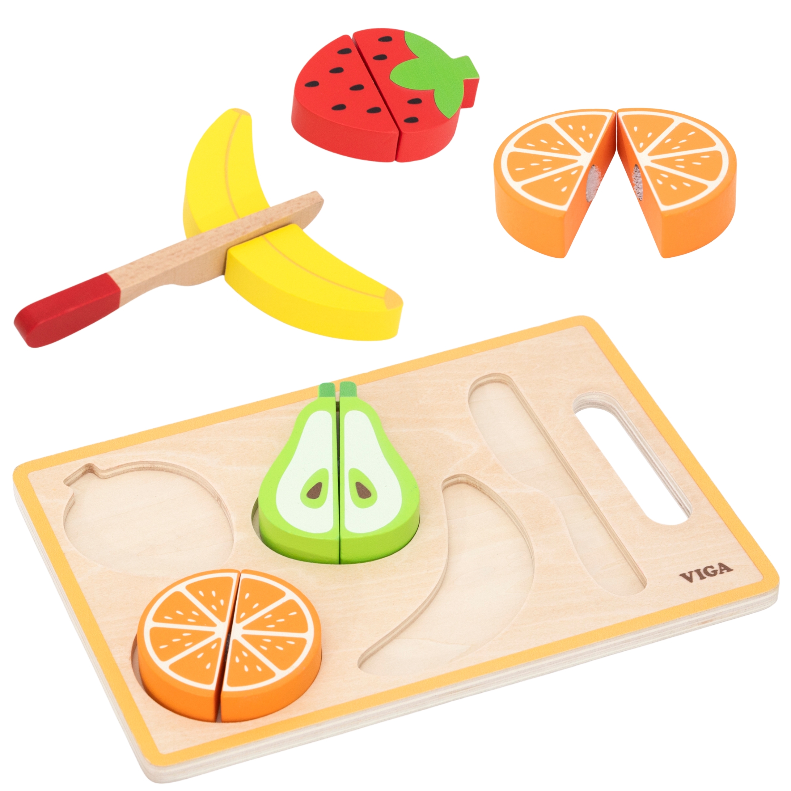 VIGA Drevené ovocie na krájanie | Montessori sada s doskou a nožom