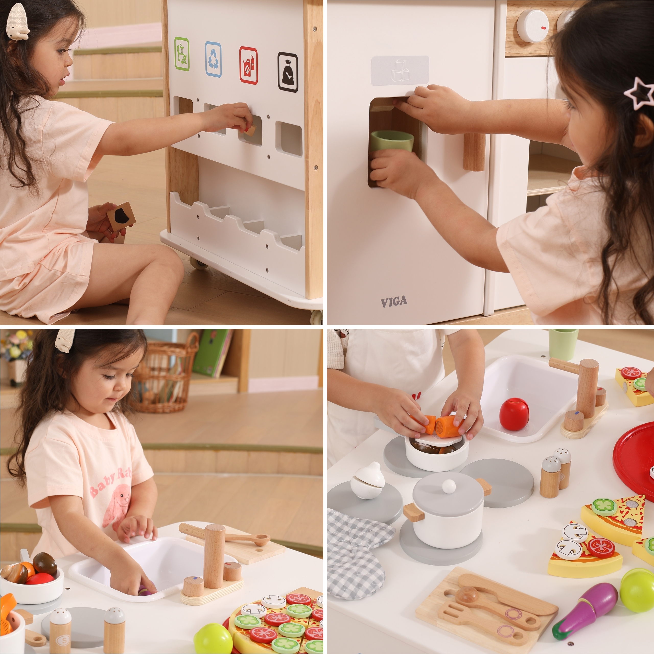 Toto domáce centrum je viac než len kuchynka alebo práčka; je to komplexná "simulácia domácnosti". Spojením varenia, prania, upratovania a najmä triedenia odpadu do jednej hračky poskytuje deťom ucelený pohľad na každodenný život a zodpovednosti. Recyklačná stanica je obzvlášť dôležitá – premieňa abstraktný koncept ochrany životného prostredia na hmatateľnú, hravú aktivitu. Je to hračka, ktorá pripravuje deti nielen na budúce domáce práce, ale aj na úlohu zodpovedného občana.