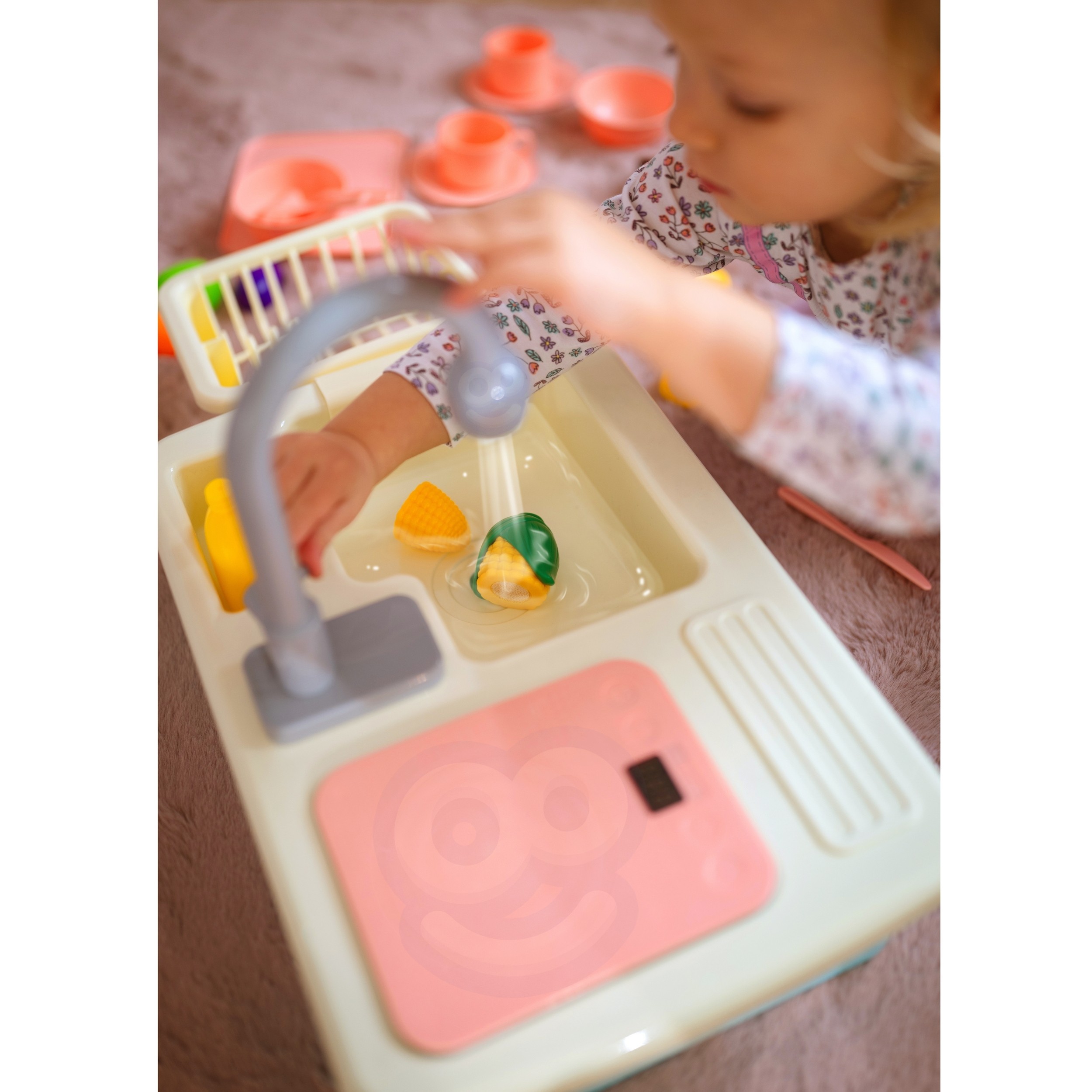 Drez v podobe detskej kuchynky od spoločnosti WOOPIE umožní deťom variť a umývať rovnako ako ich rodičia - napodobňovať ich už od útleho veku! Hračka je dokonale reprodukovaná, takže dieťa má dojem, že vykonáva skutočné kuchynské činnosti, má pohyblivé prvky, ako napríklad vodovodnú batériu, z ktorej tečie skutočná voda. Ovocie a zelenina sú navyše spojené suchým zipsom, takže ich dieťa môže rozrezať na polovicu ako skutočné výrobky! Hra na varenie, umývanie riadu a podobné práce pomáhajú deťom získať pocit zodpovednosti a samostatnosti, čo je dôležitá súčasť sociálno-emocionálneho učenia.