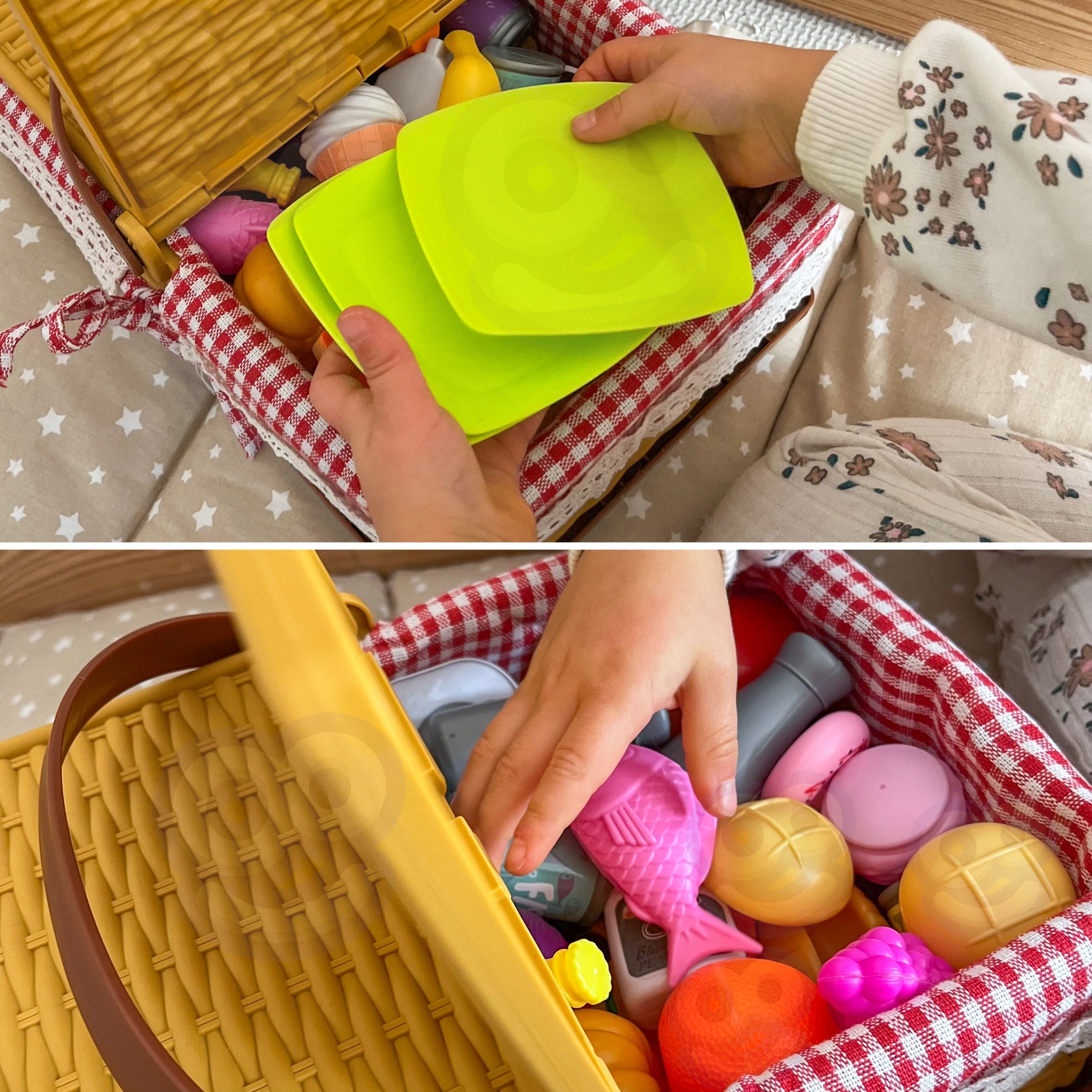 🧺 Nekonečné herné scenáre: Vďaka obrovskej rozmanitosti prvkov sa deti môžu hrať na piknik, reštauráciu, kaviareň, obchod alebo si len tak doplniť zásoby vo svojej detskej kuchynke.