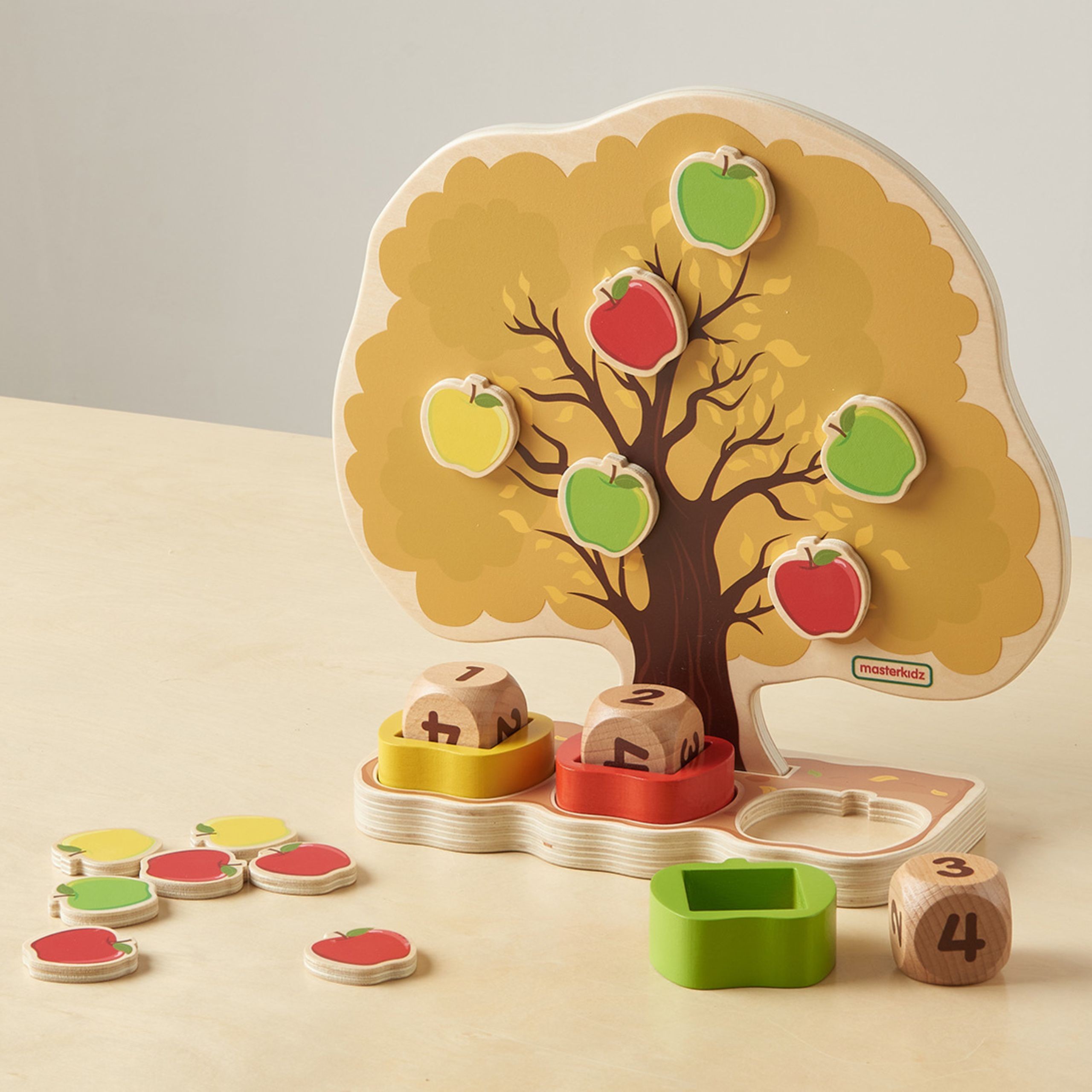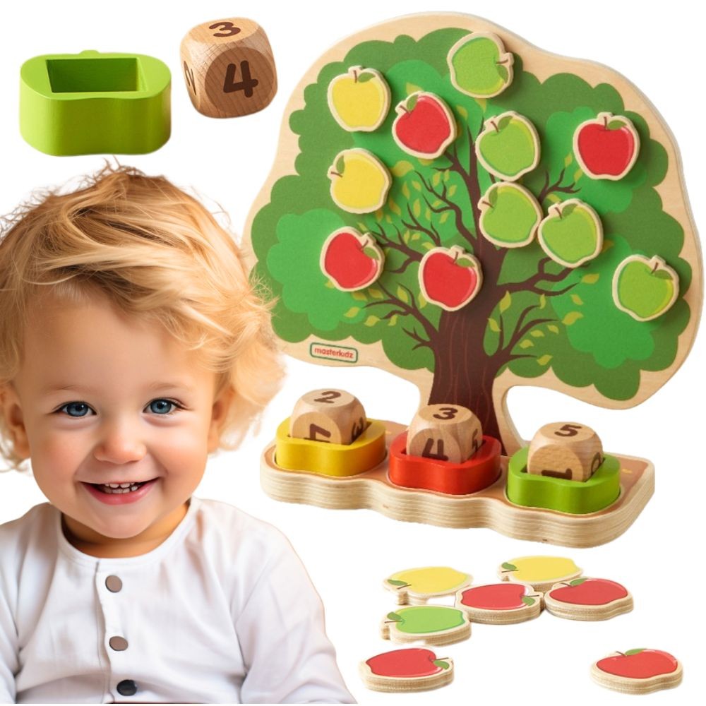 Premeňte prvé stretnutie s číslami na fascinujúci zážitok! Deti najlepšie nasávajú vedomosti vtedy, keď si môžu veci reálne ohmatať. Drevený jabloňový strom Masterkidz je úžasná edukačná pomôcka, ktorá prenáša čísla z papiera do reálneho sveta. Súprava obsahuje nádherne spracovaný drevený strom a množstvo farebných magnetických jabĺčok. Úlohou malých počtárov je jabĺčka na strom pridávať alebo ich z neho oberať podľa úloh, ktoré im padnú na priložených hracích kockách.