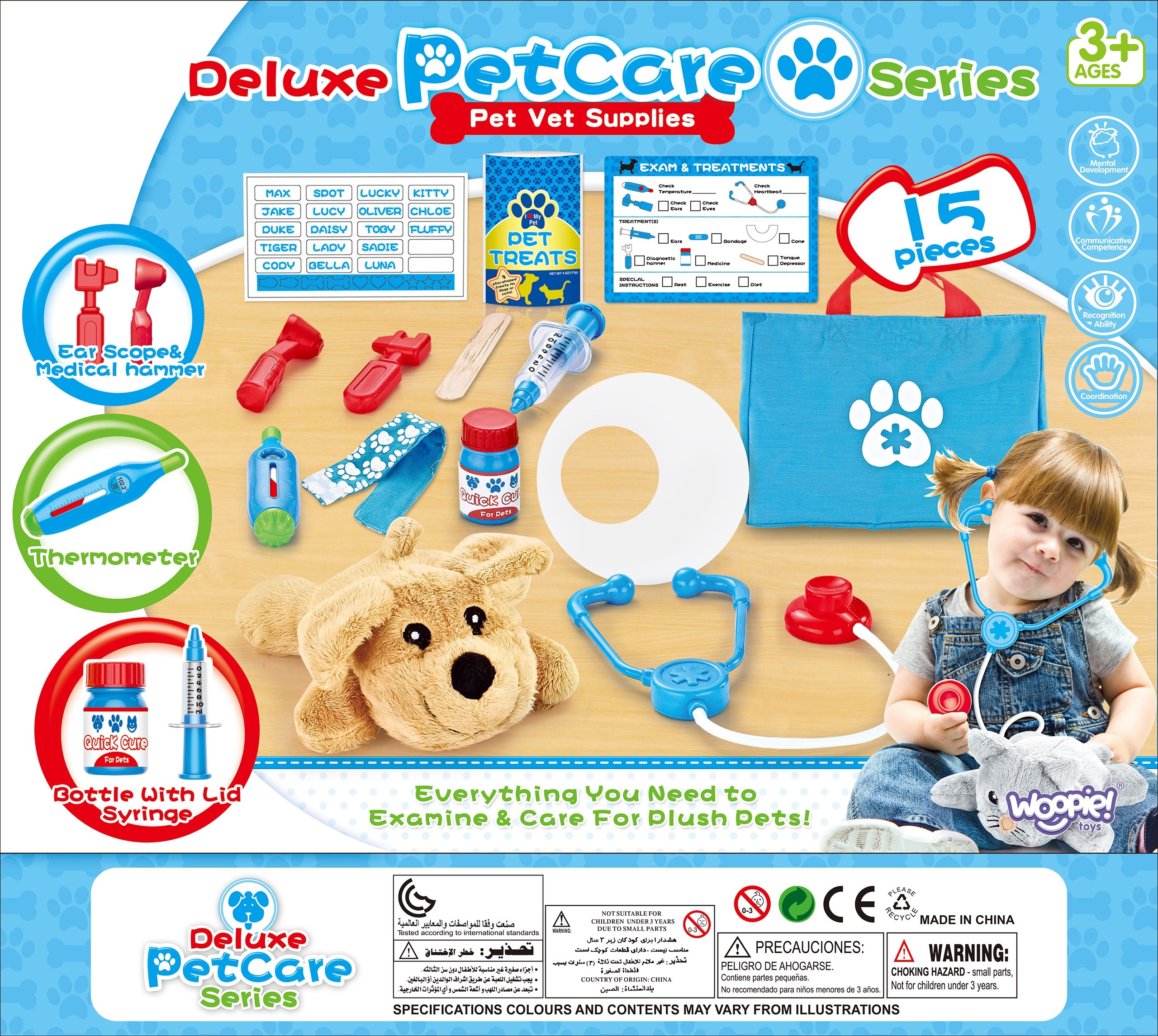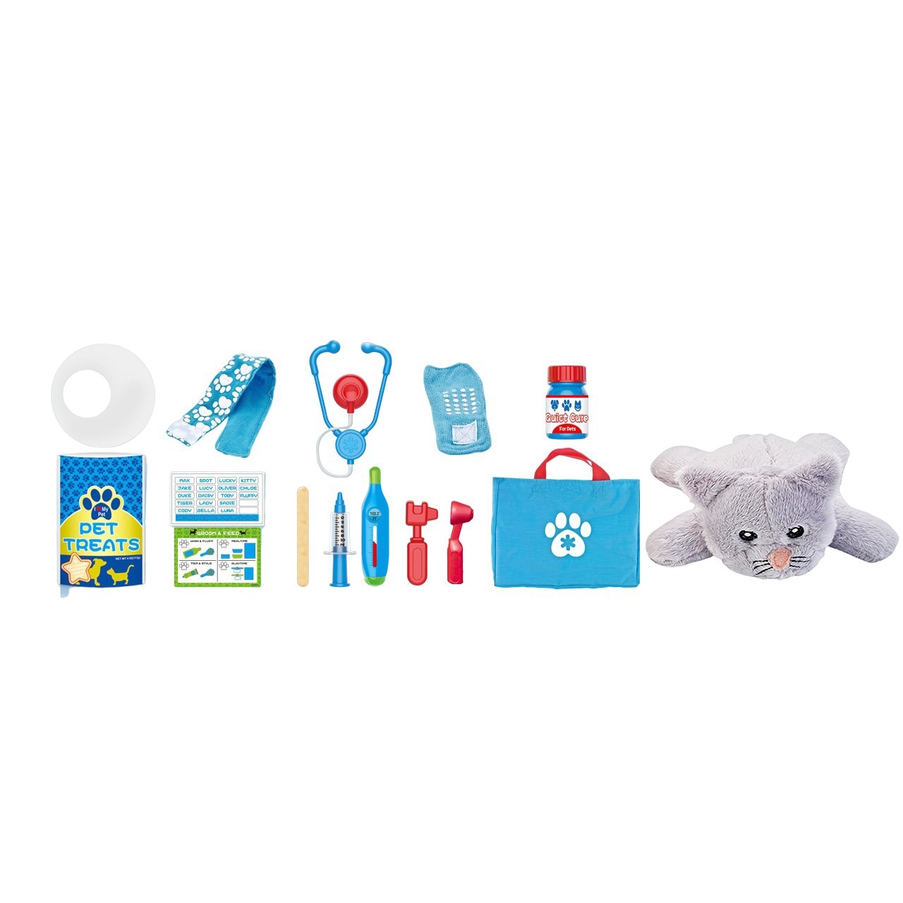 Detská veterinárna súprava od spoločnosti WOOPIE je ideálnou hračkou pre všetkých milovníkov zvieratiek a hier na veterinára. Sada obsahuje 15 predmetov, medzi nimi: plyšové zvieratko - mačiatko, stetoskop, lieky, injekčná striekačka - replika, obojok a mnoho ďalších. Doktorská sada vám umožní vyliečiť vaše obľúbené zvieratko a zároveň sa vaše dieťa naučí empatii a získa sociálne zručnosti. Starostlivosť o zvieratá je aj o učení sa zodpovednosti. Hranie rolí - má pozitívny vplyv na vývoj dieťaťa, stimuluje predstavivosť a kreativitu.