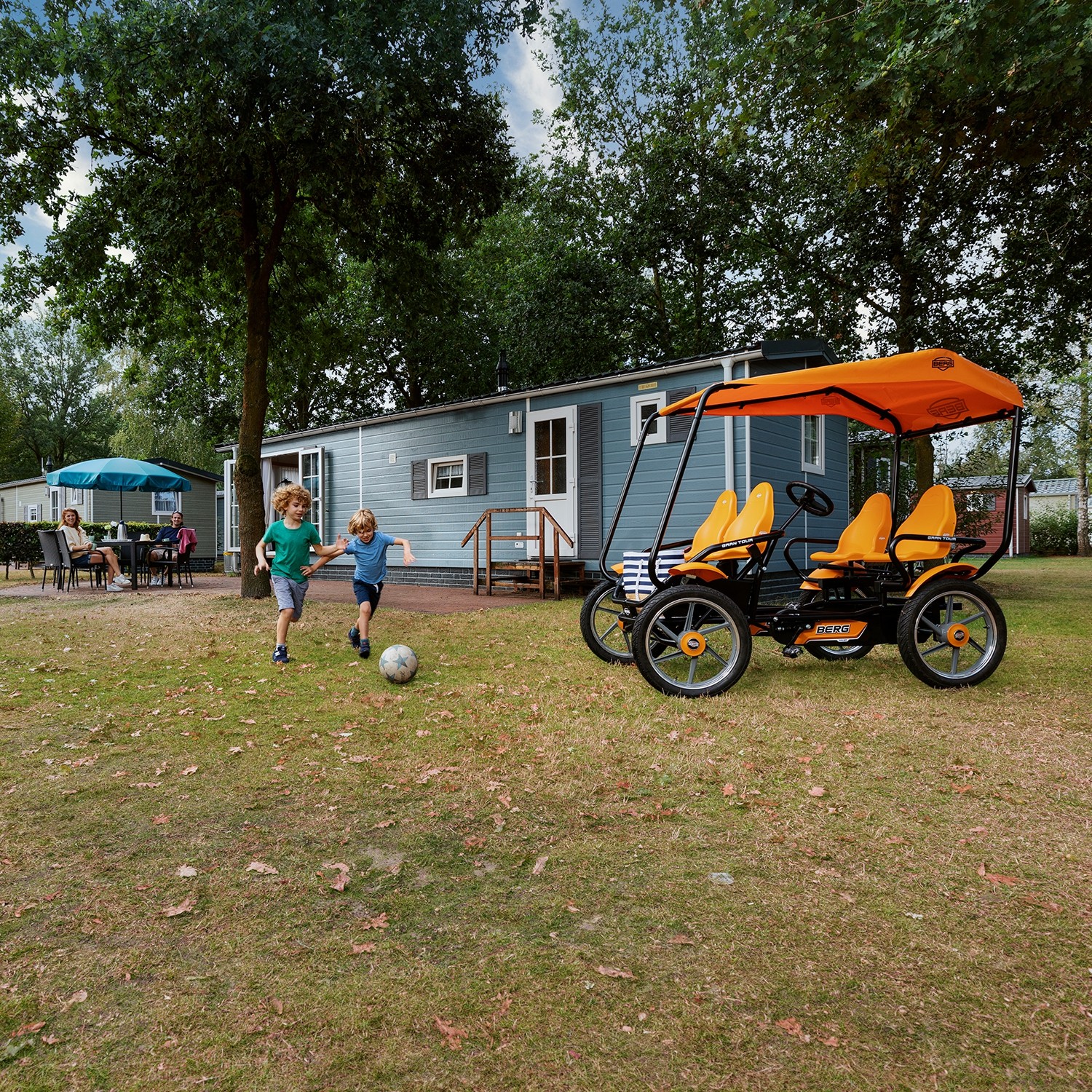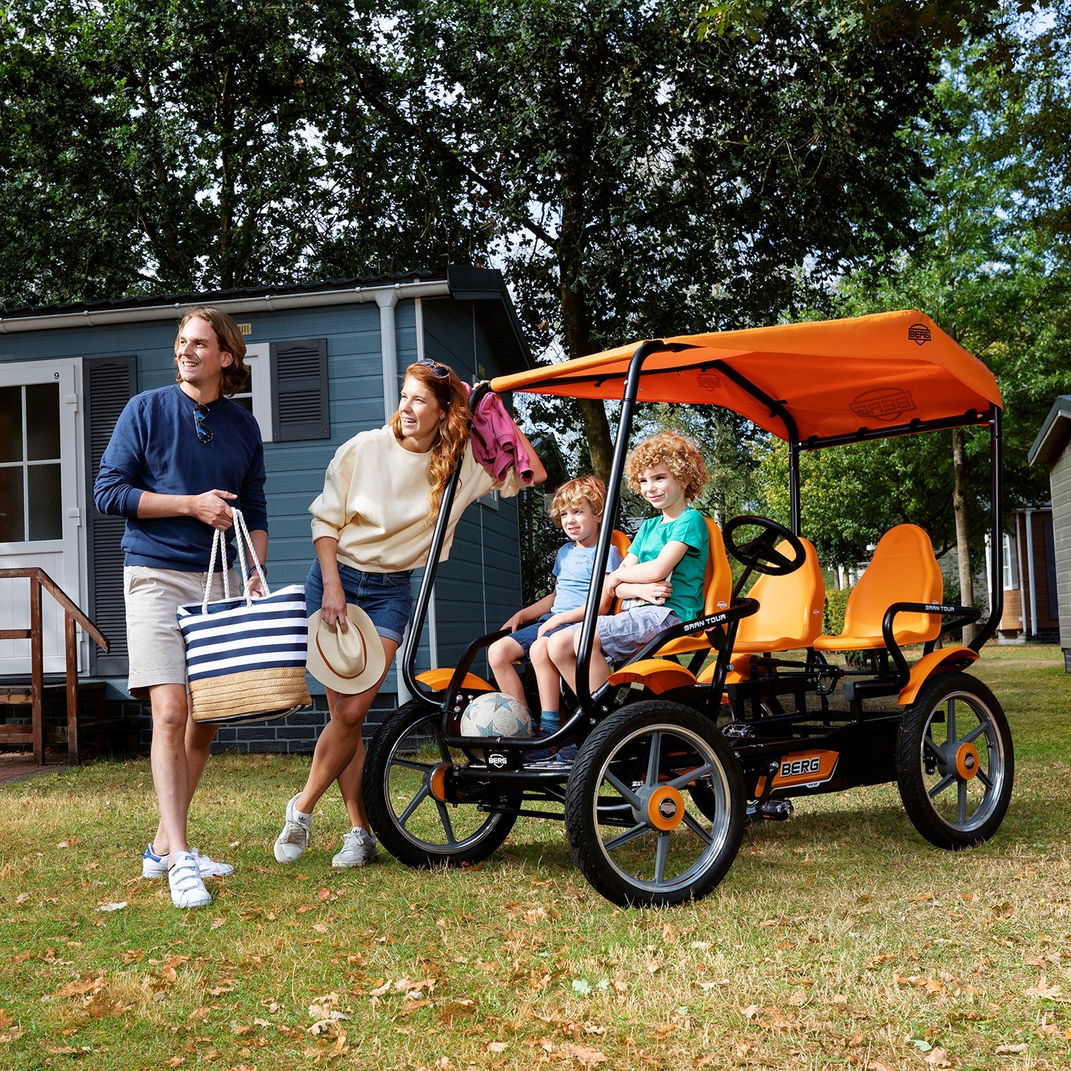 Skvelá atrakcia na rekreáciu - bicykel / motokára BERG Gran Tour! Motokára pre štyri osoby s ergonomickým dizajnom, vďaka ktorému je jazda úplne bezpečná. Je to skutočná zábava pre malých aj veľkých vodičov. Vozidlo je určené na väčšiu záťaž a navrhnuté s dôrazom na vysoký komfort z jazdy.