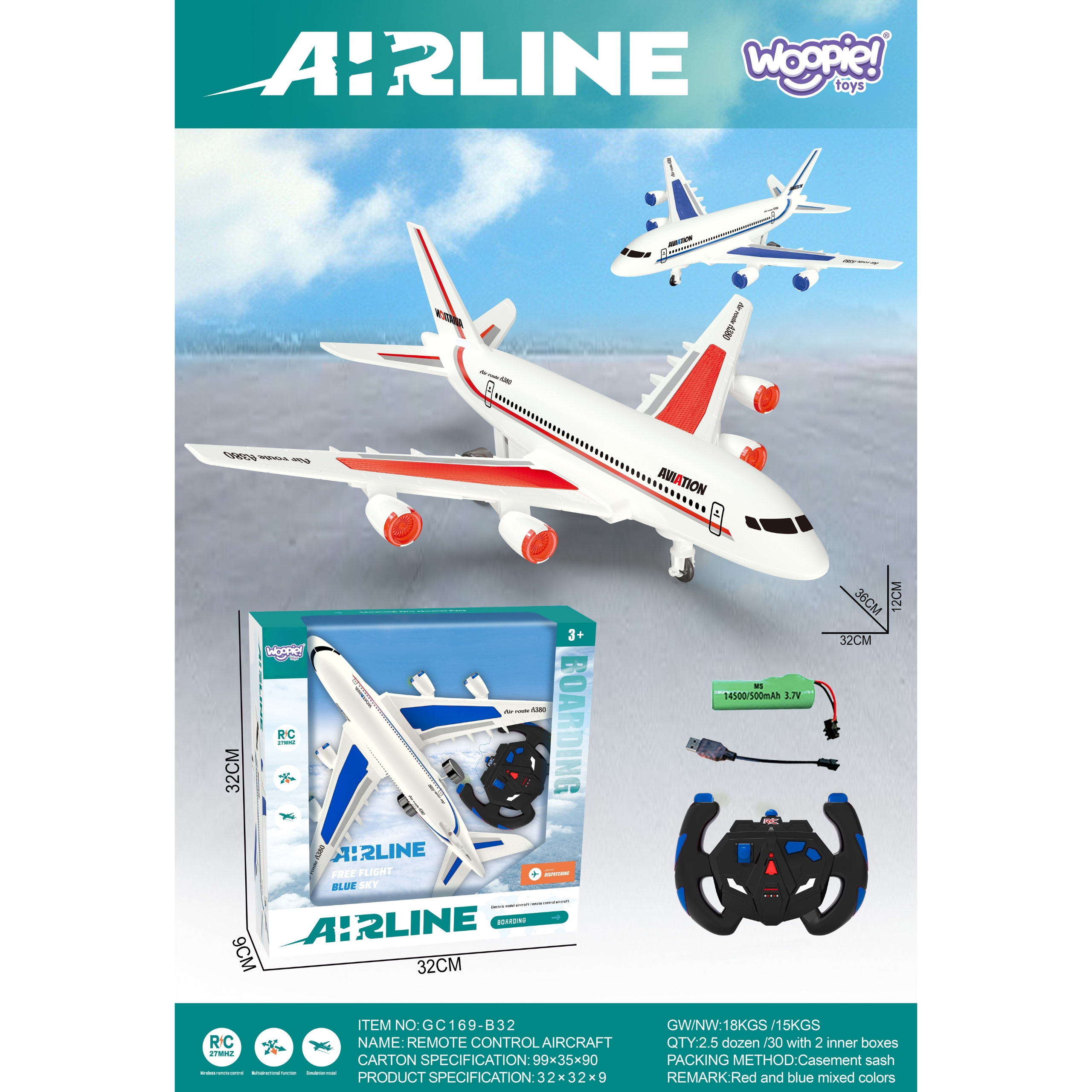 WOOPIE Jazdiace RC lietadlo Airline na diaľkové ovládanie