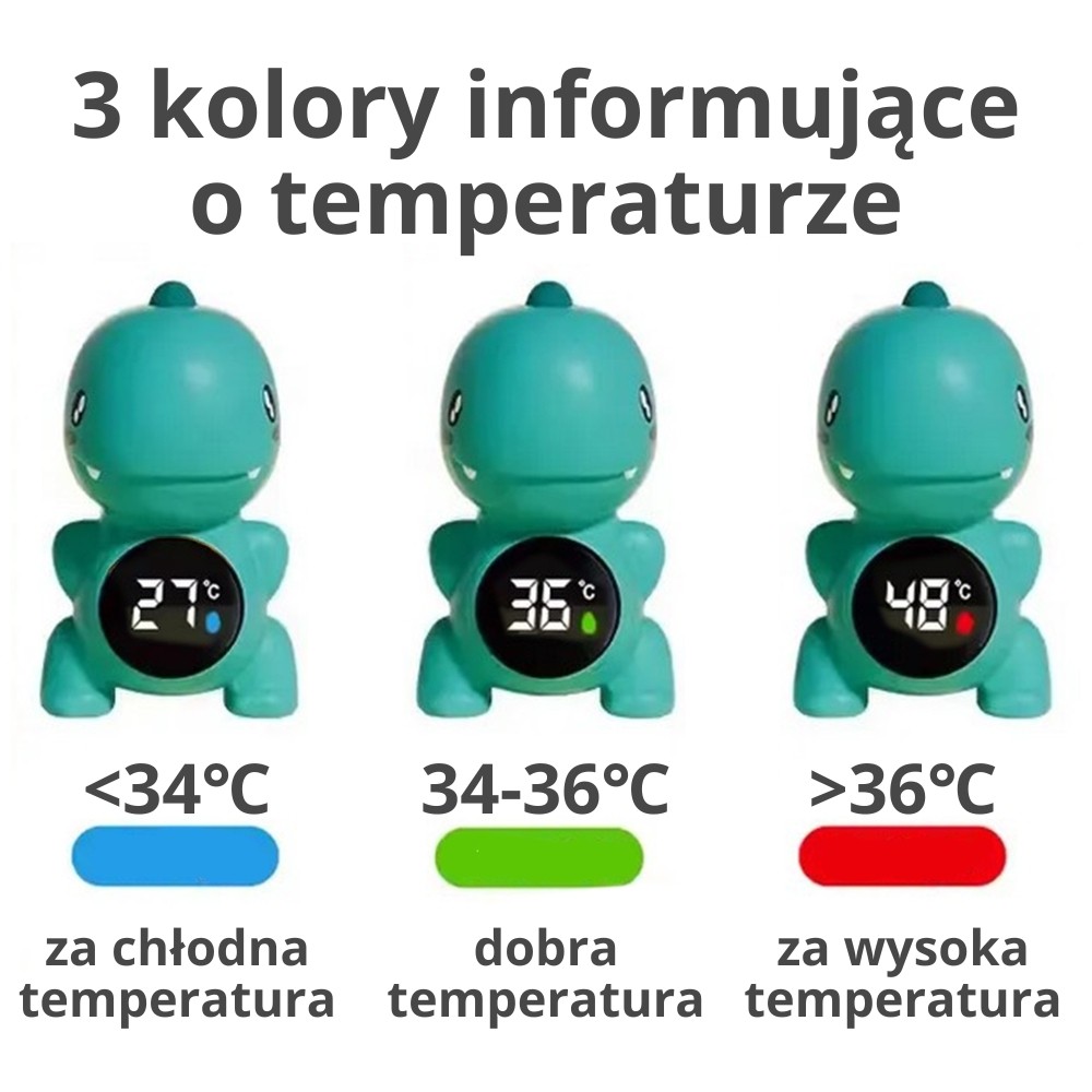 Teplomer v podobe dinosaura od spoločnosti WOOPIE je zábavný a praktický doplnok, vďaka ktorému je meranie teploty vody zábavou. Tento teplomer je ideálny na použitie vo vani, izbe, bazéne alebo pri kúpaní vášho dieťaťa, ľahko sa používa a poskytuje presné merania. Dino je vyrobené z bezpečných materiálov a vďaka svojmu veselému dizajnu si ho obľúbia deti aj rodičia.