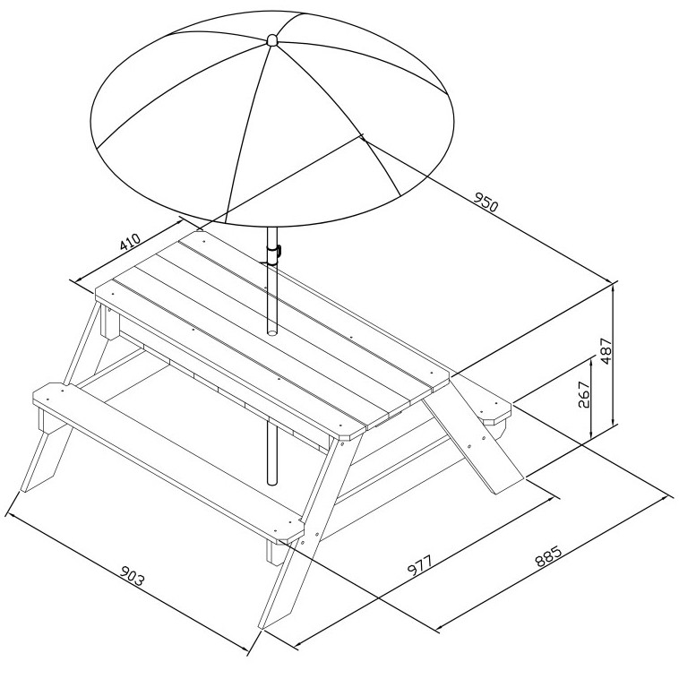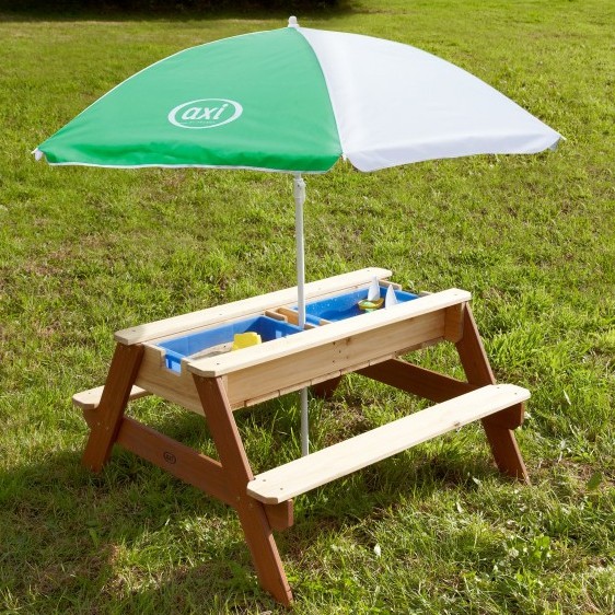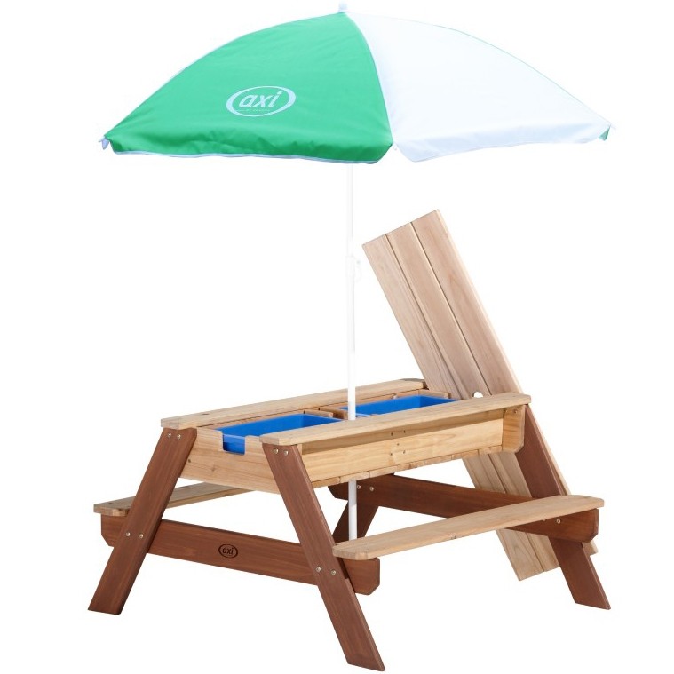 Piknikový Stôl AXI Nick s Lavičkou, Slnečníkom, Nádobami na Vodu a Piesok