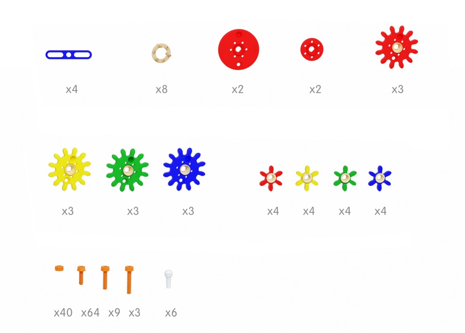 - Súprava ozubených kolies značky Masterkidz je určená na montáž do ich špecializovaného systému Masterkidz STEM. Každý požadovaný prvok by mal byť priskrutkovaný k vzdelávacej stene pomocou špeciálnych skrutiek prispôsobených pre detské náradie od Masterkidz.