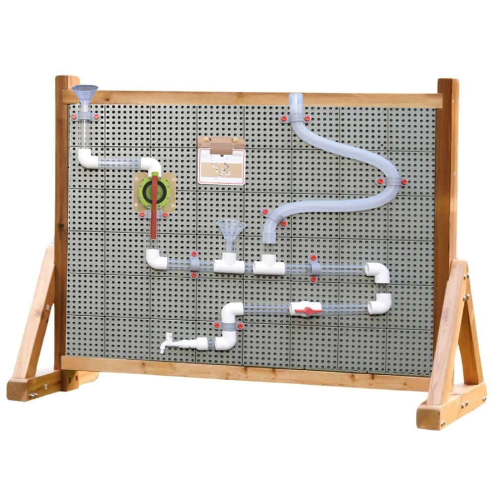 Voľne stojaca tabuľa STEM je inovatívna vzdelávacia tabuľa, ktorá poskytuje priestor na kreatívnu hru a učenie. Deti môžu vytvárať obrázky, mozaiky, sekvencie, guľôčkové dráhy, ozubené kolesá a dokonca aj tobogany. Vďaka obojstrannému dizajnu je možné vykonávať rôzne aktivity na oboch stranách tabule súčasne, čo podporuje skupinovú spoluprácu. Táto STEM stena s vodnou dráhou a pumpou je skvelým spôsobom, ako povzbudiť deti k navrhovaniu, stavaniu a riešeniu problémov vonku.