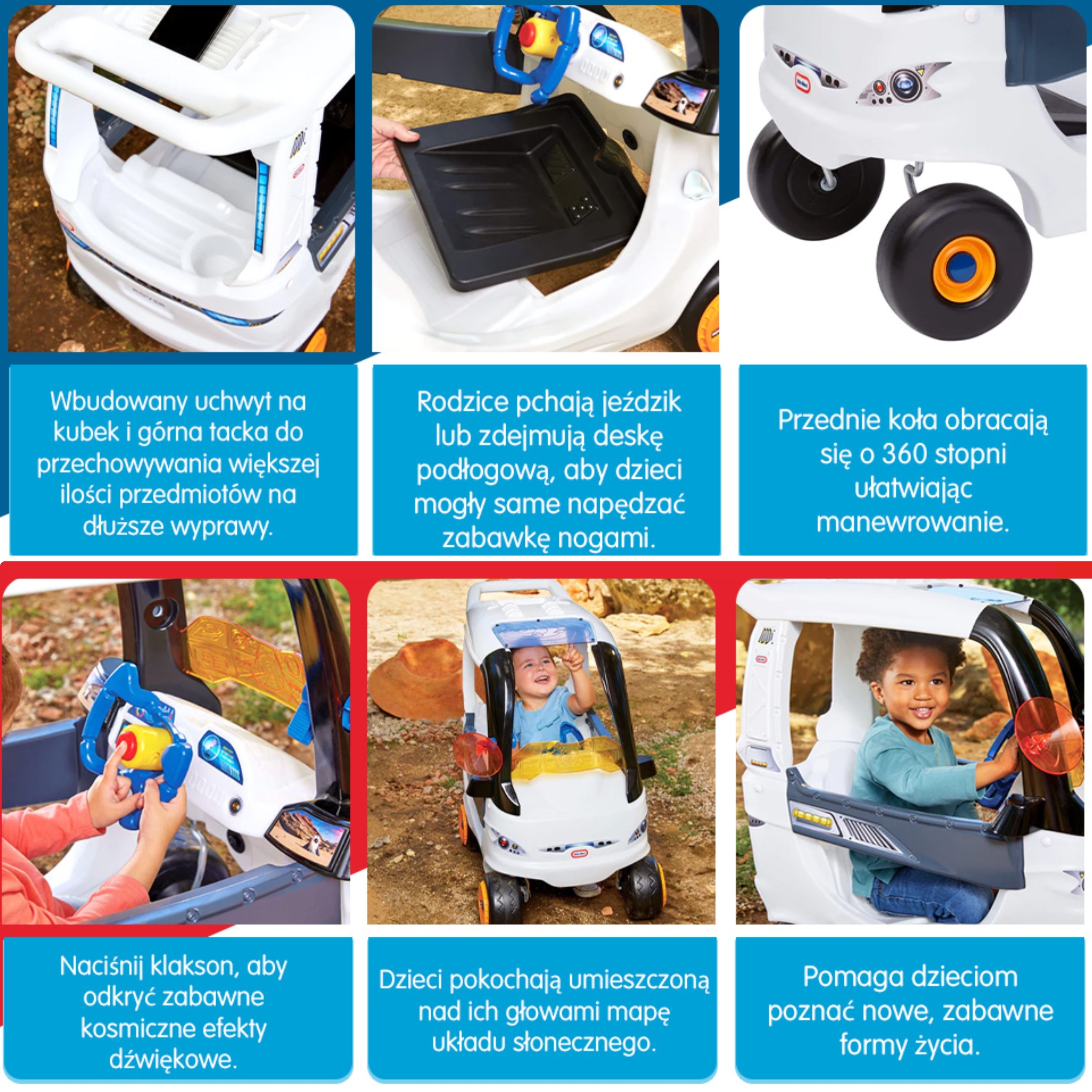 3... 2... 1... Štart! Pridajte Little Tikes Cozy Coupe Vesmírne vozidlo do košíka a vydajte sa na cestu ku hviezdam plnú smiechu a fantázie.