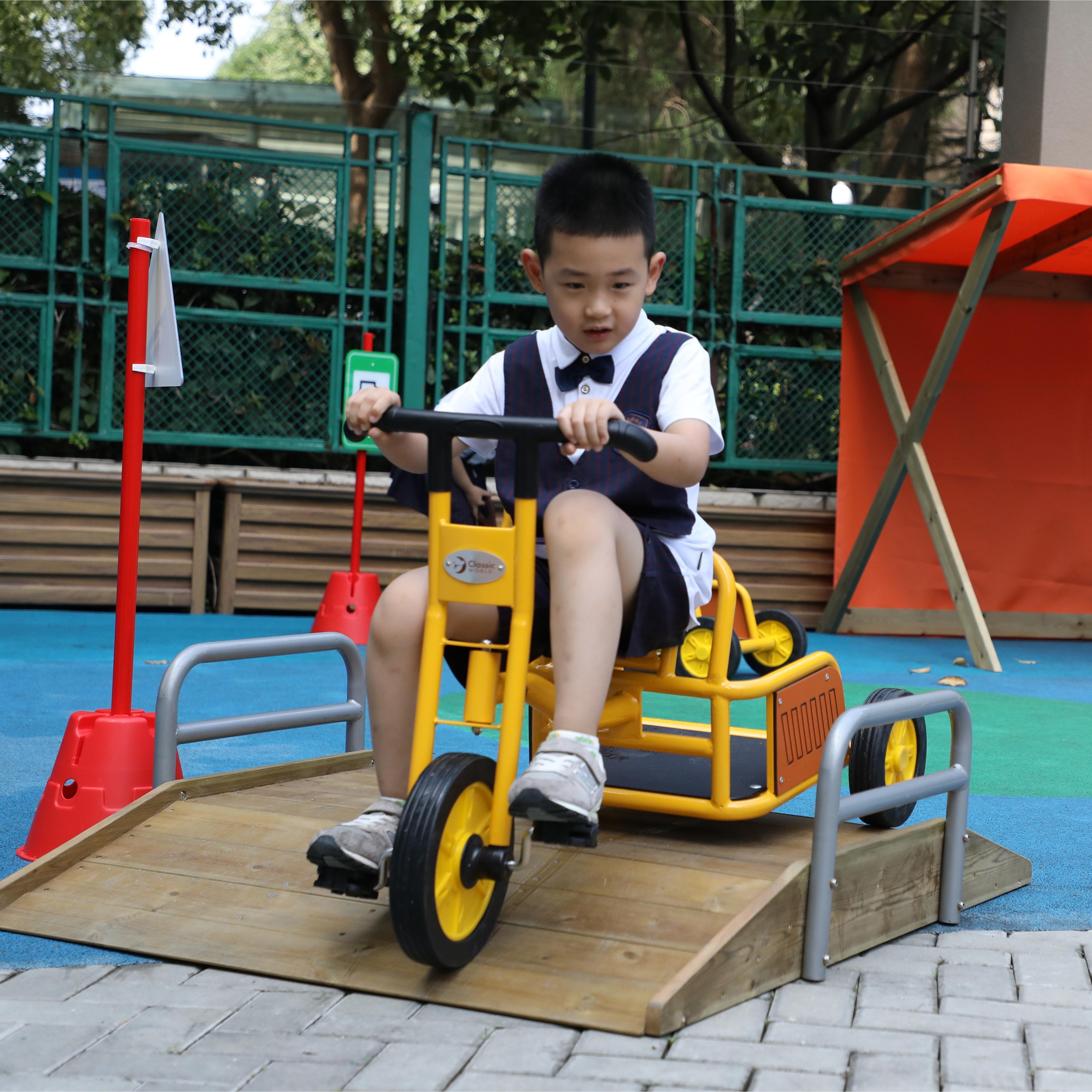 Pre aké vozidlá je táto rampa vhodná? Rampa je ideálna pre všetky bežné detské bezmotorové vozidlá. Je perfektná pre odrážadlá (dvojkolesové aj štvorkolesové), trojkolky, detské bicykle, kolobežky, a dokonca aj pre šliapacie traktory. Šírka nájazdu je dimenzovaná tak, aby deťom poskytovala dostatočný a bezpečný manévrovací priestor.
