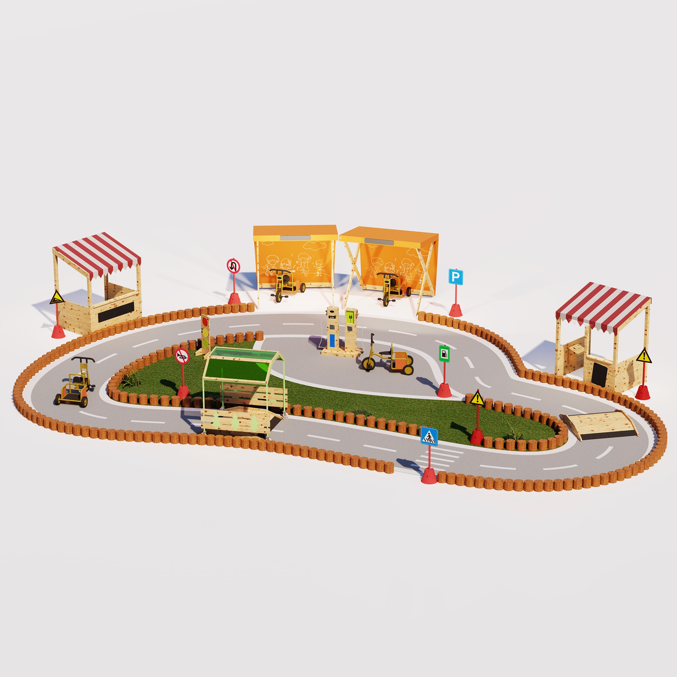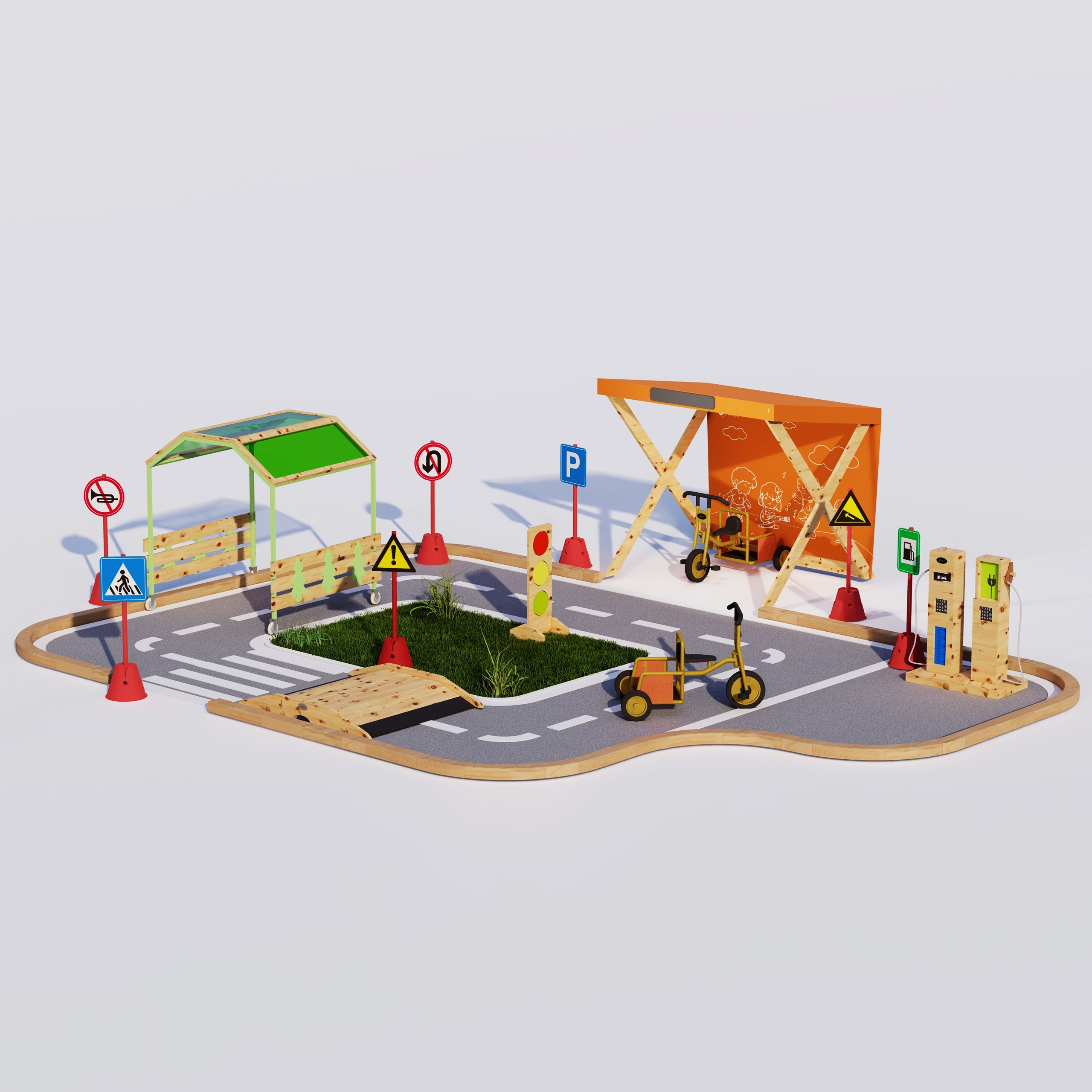 🛤️ Modulárny dizajn dopravnej dráhy: Mostík sa dá perfektne kombinovať s dopravnými značkami a ďalšími prekážkami, čím si viete na dvore vyskladať nekonečné dopravné ihrisko.