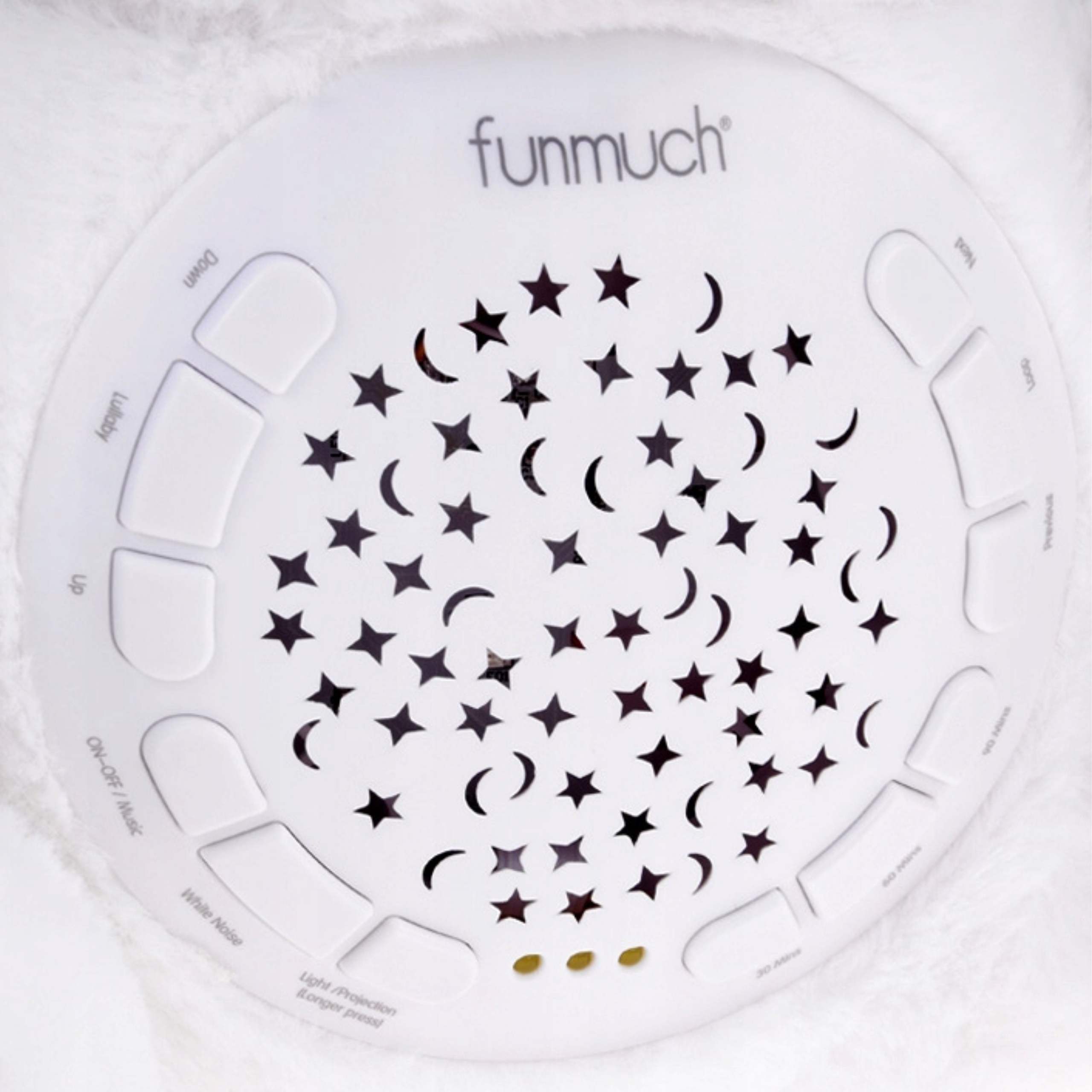 Funkcie: Projektor (7 efektov), 10 uspávaniek, 5 bielych šumov, Časovač (30/60/90 min), Funkcia Loop
