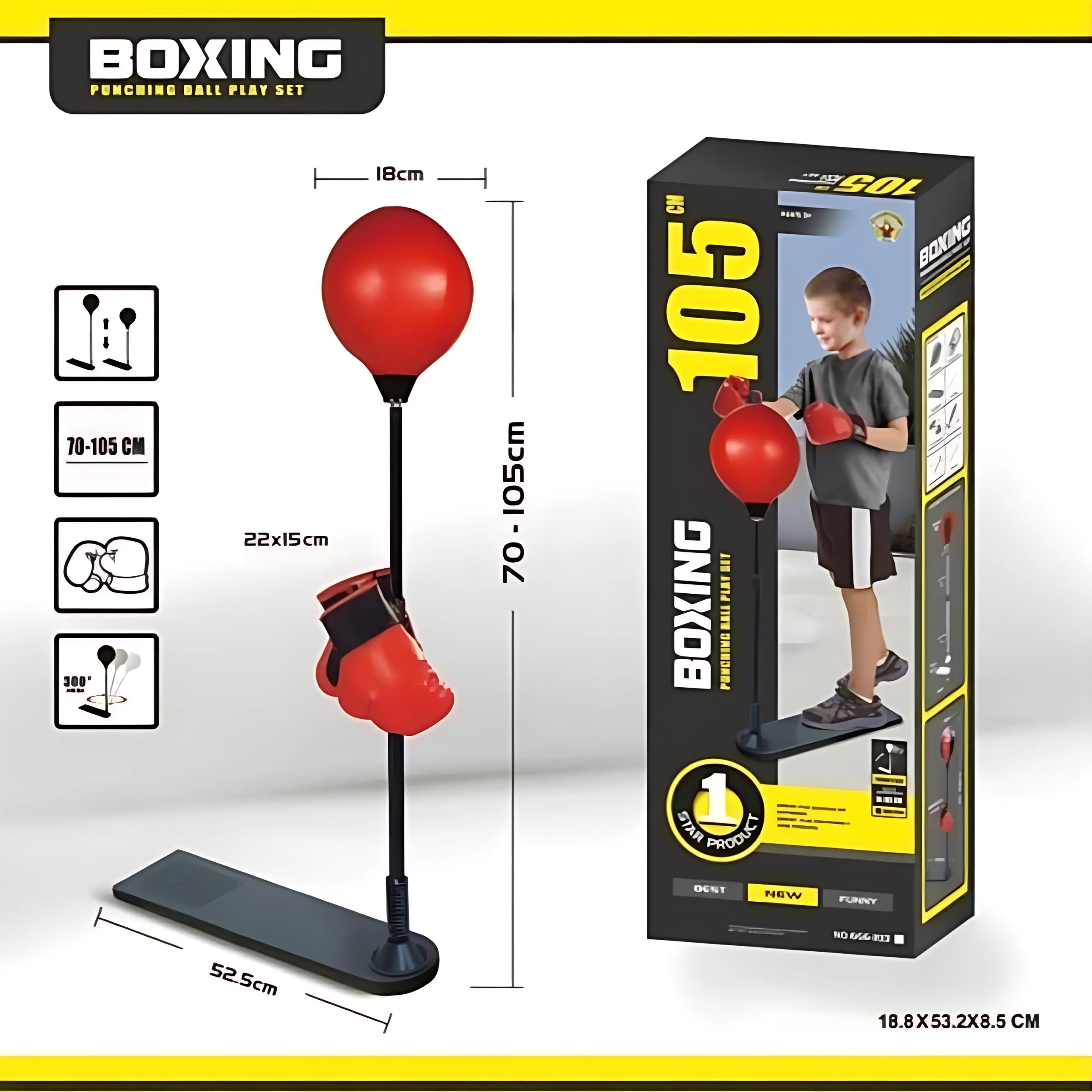 Boxerská sada s nastaviteľnou polohou v tvare hrušky od Woopie je perfektnou voľbou pre deti, ktoré chcú aktívne tráviť svoj čas a cítiť sa ako skutoční šampióni v ringu! Hračka poskytuje veľa radosti, umožňuje uvoľniť energiu a zlepšiť si svoje zručnosti a zároveň zaručuje skvelú zábavu doma aj vonku. Sada obsahuje boxerské rukavice a nastaviteľný stojan s hruškou, vďaka čomu sa sada prispôsobí ich potrebám.