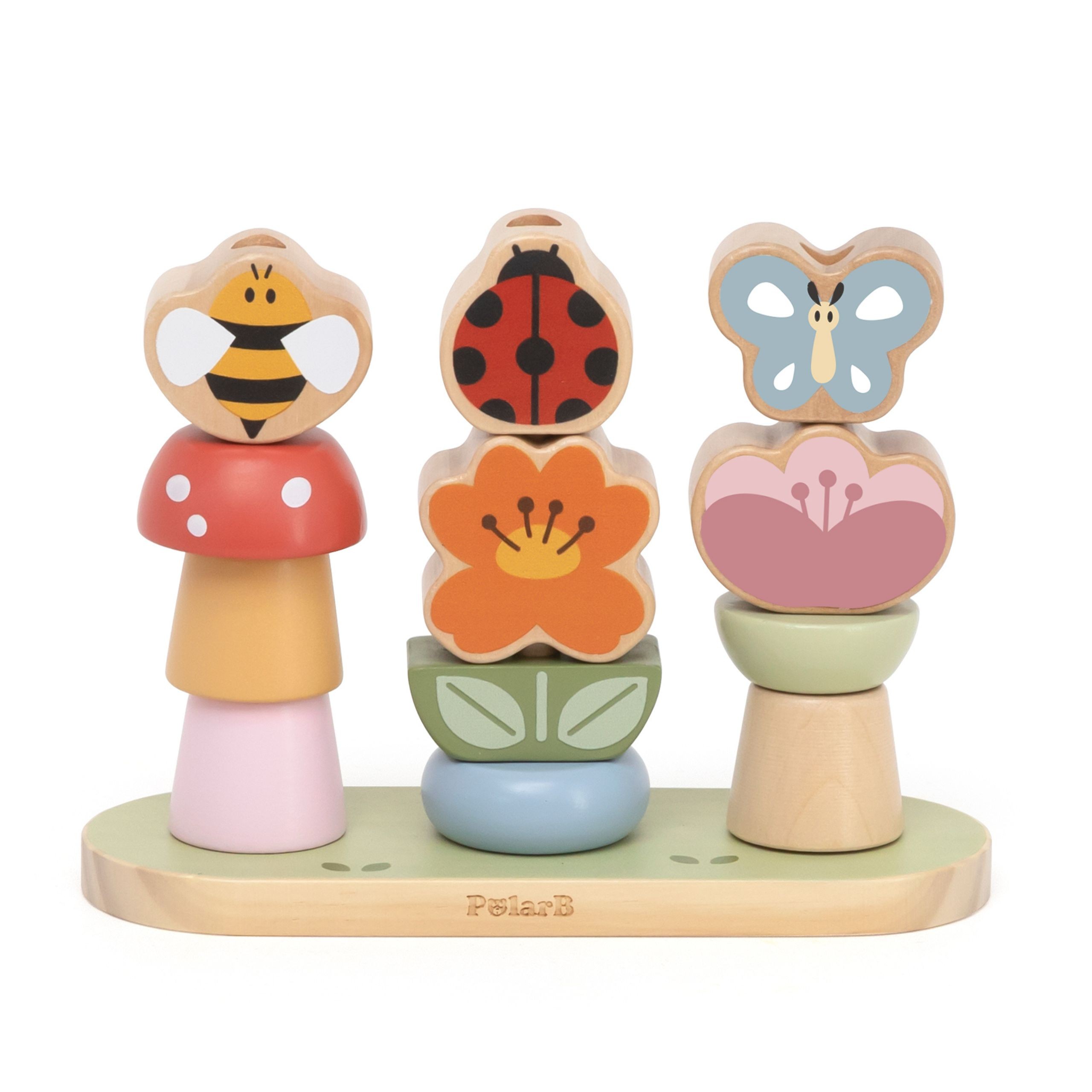 Drevené bloky sú rozmerovo prispôsobené drobným rúčkam, takže sa deťom ľahko uchopujú a nehrozí žiadne riziko prehltnutia. Motív rozkvitnutej záhrady s pestrofarebnými prvkami podnecuje detskú zvedavosť, upokojuje nervový systém a nenásilne pomáha rodičom pri učení prvých základných farieb.
