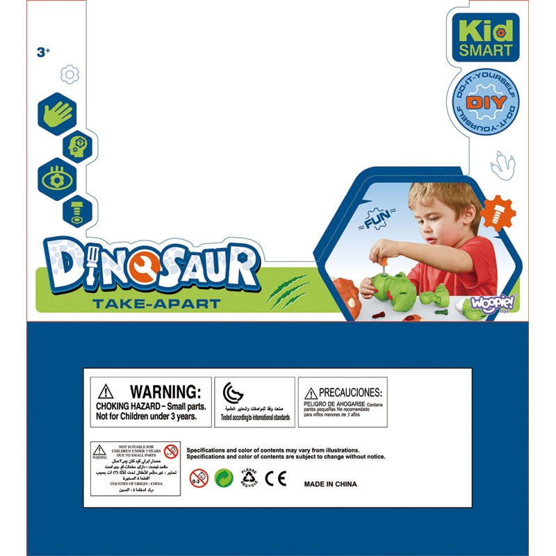 Dinosaurus Tyrannosaurus značky WOOPIE je ideálna hračka pre domácich majstrov, ktorá vráti vaše dieťa do praveku. Dino má pohyblivé prvky: hlavu a končatiny, čo umožňuje väčšie možnosti hry. Sada obsahuje veľa prvkov, z ktorých si dieťa pomocou funkčného skrutkovača poskladá dinosaura. Hračka rozvíja manuálne zručnosti, takzvanú "jemnú motoriku" - pohyby rúk. Dinosaurus je nadčasová téma, ktorú milujú všetky deti.