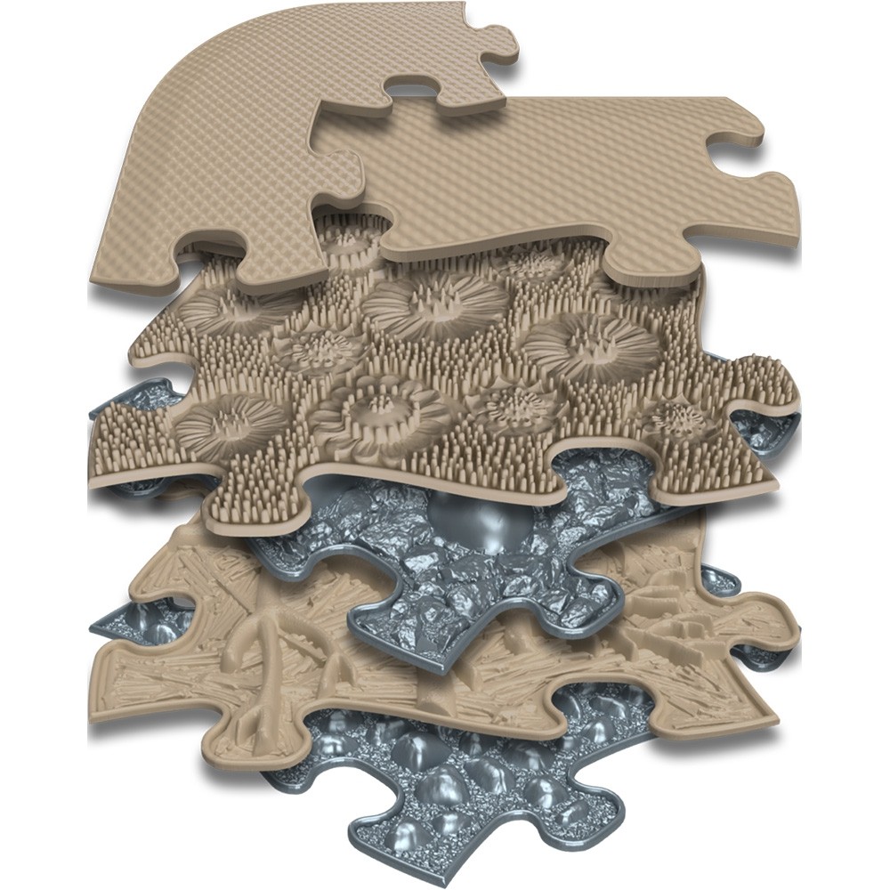 - 4x podložky: mäkká béžová lúka, tvrdé béžové korene, veľké tvrdé sivé kamene, malé tvrdé sivé kamienky,