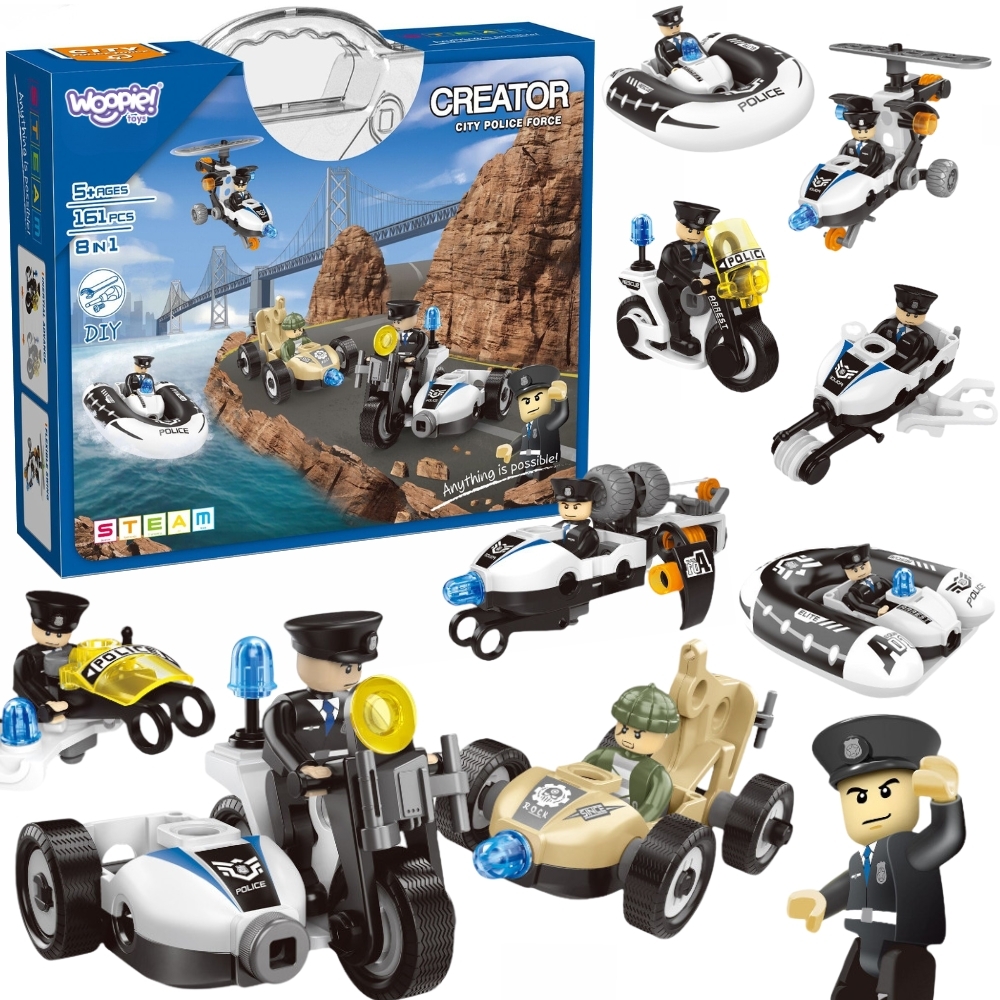 WOOPIE Stavebnica Polícia 8v1 | Postav si 8 policajných vozidiel a strojov