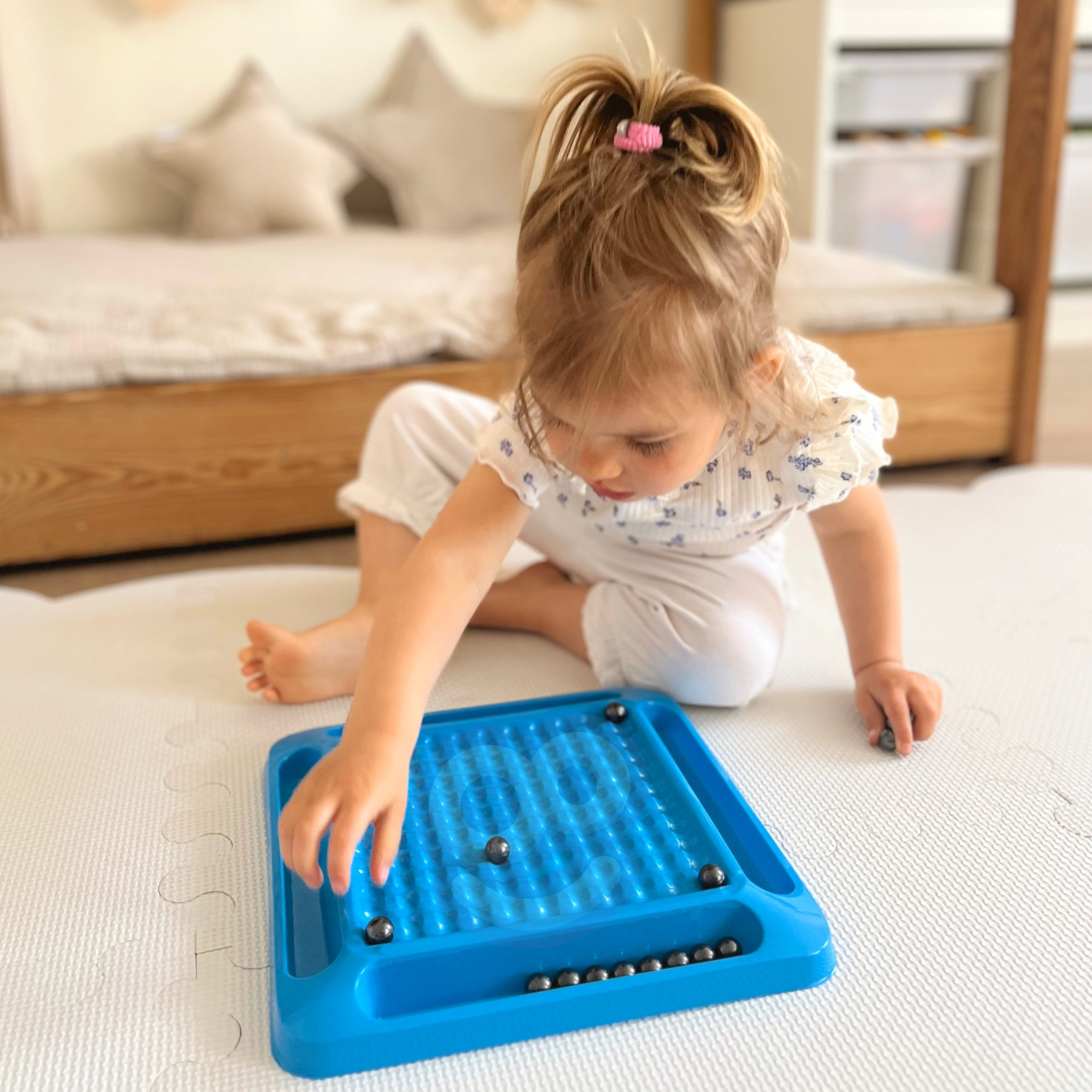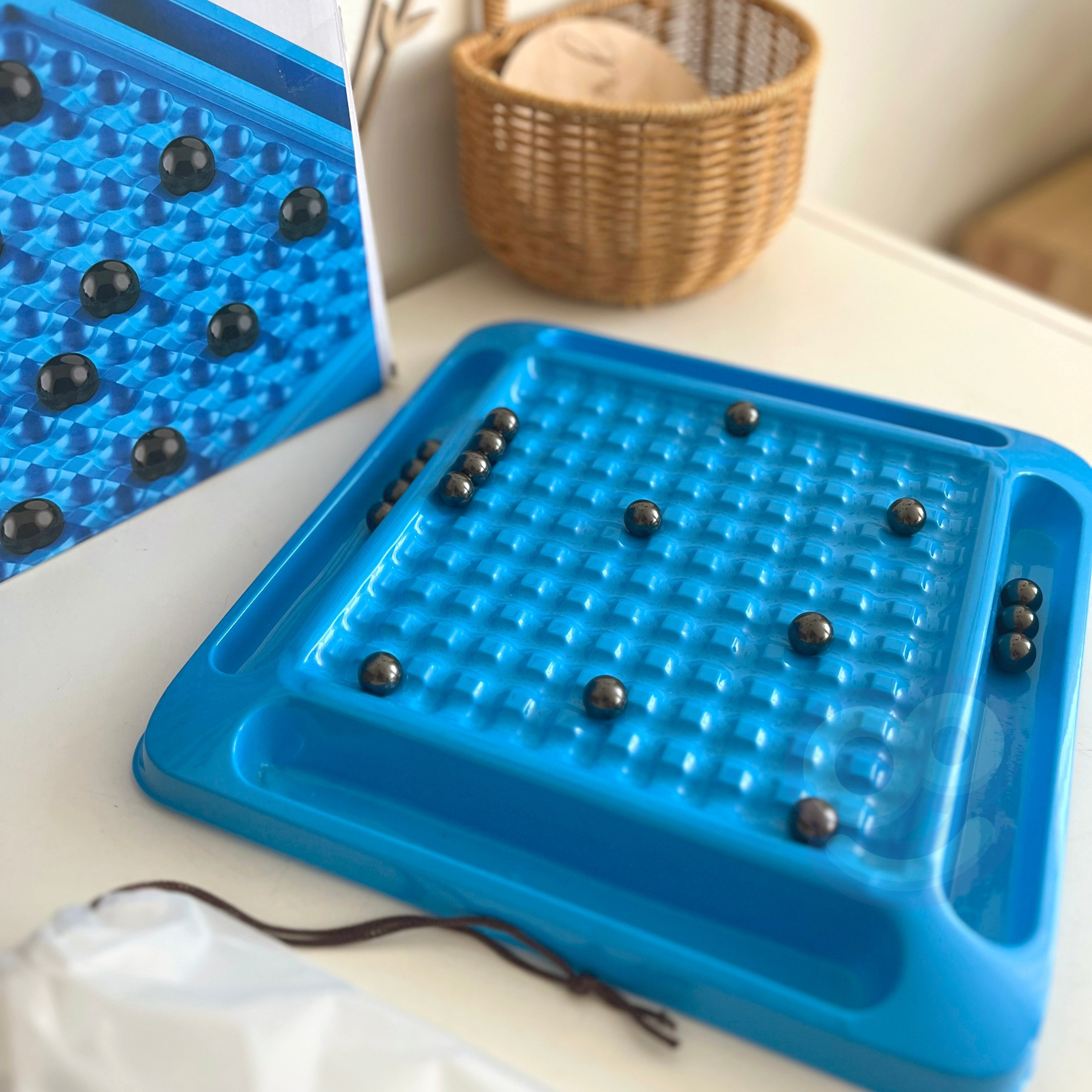- Sada obsahuje: 20 magnetických loptičiek, hraciu dosku so 4 policami na magnety a vrecúško na loptičky.