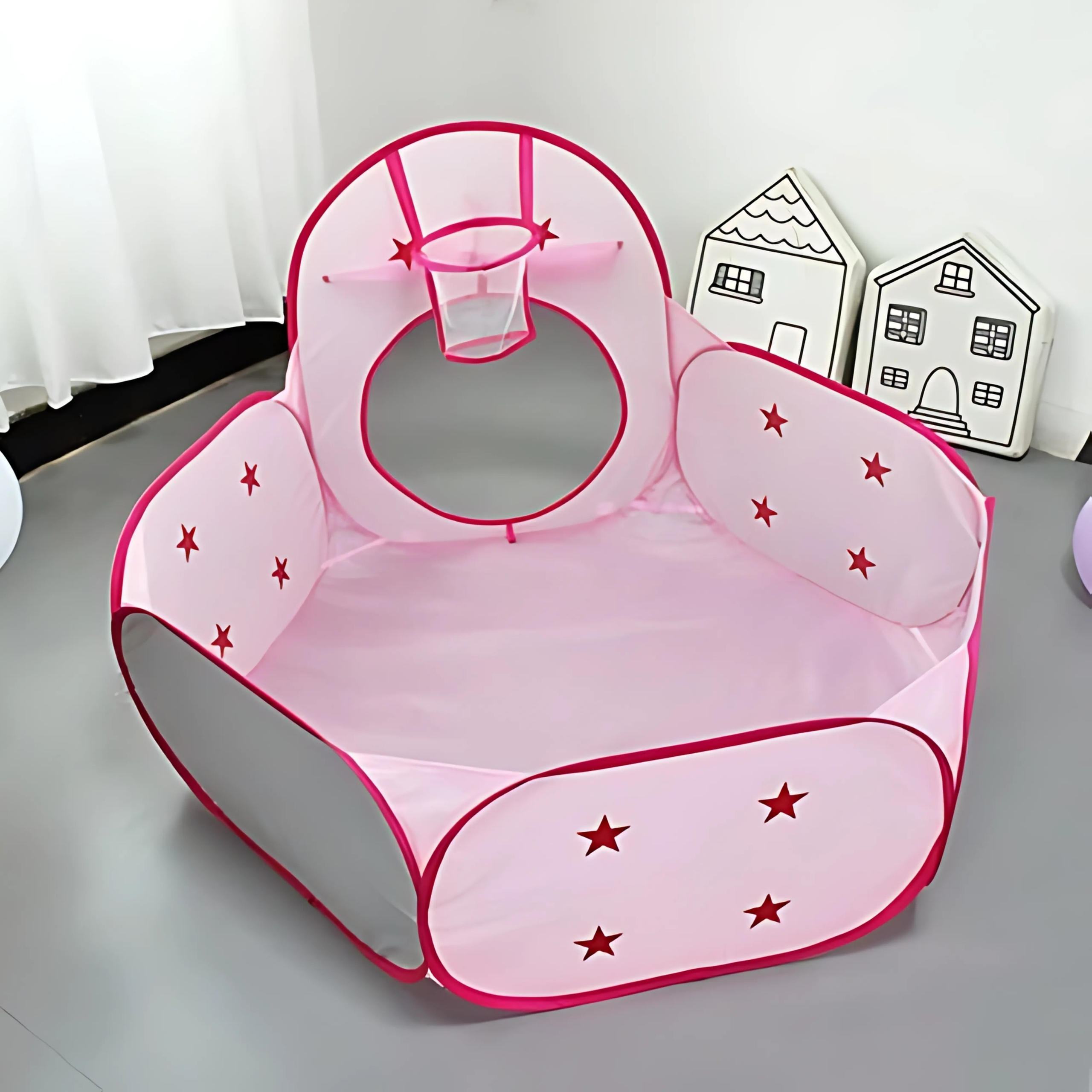 - Suchý bazén: Priestranná relaxačná a hracia zóna, pripravená na naplnenie obľúbenými loptičkami (lopty sa predávajú samostatne).