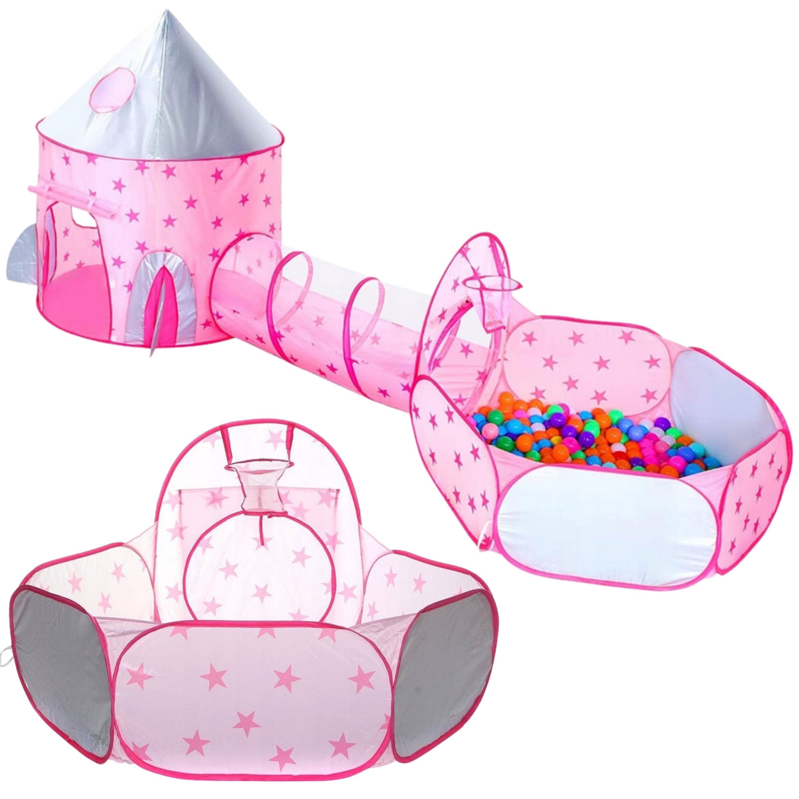 Ružová hracia sada 3v1 od Woopie je ideálnym miestom pre nezabudnuteľné dobrodružstvá, tajné úkryty a hodiny kreatívnej hry! Určená pre malých snílkov, ktorí milujú hranie sa na princezné a objavovanie nových svetov.