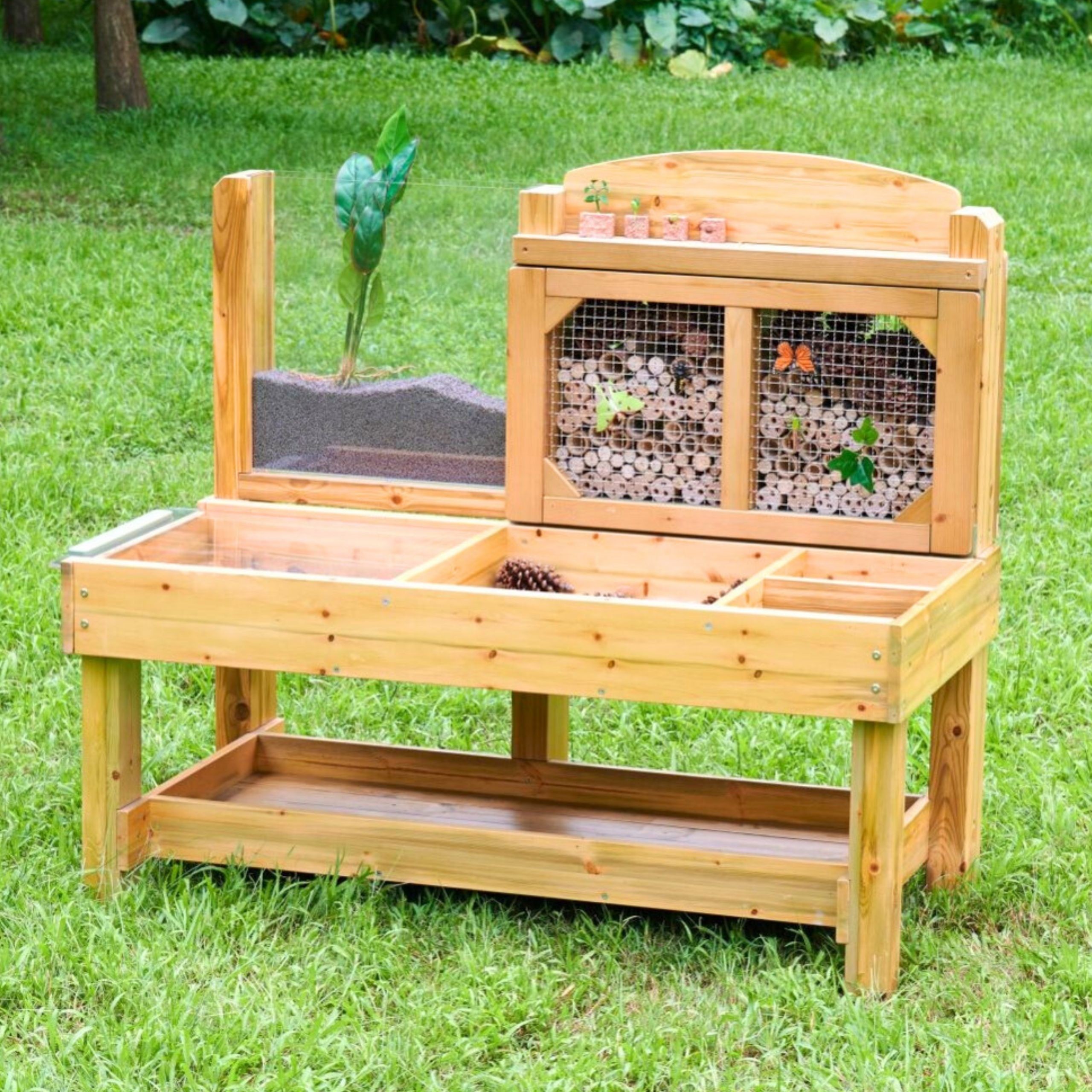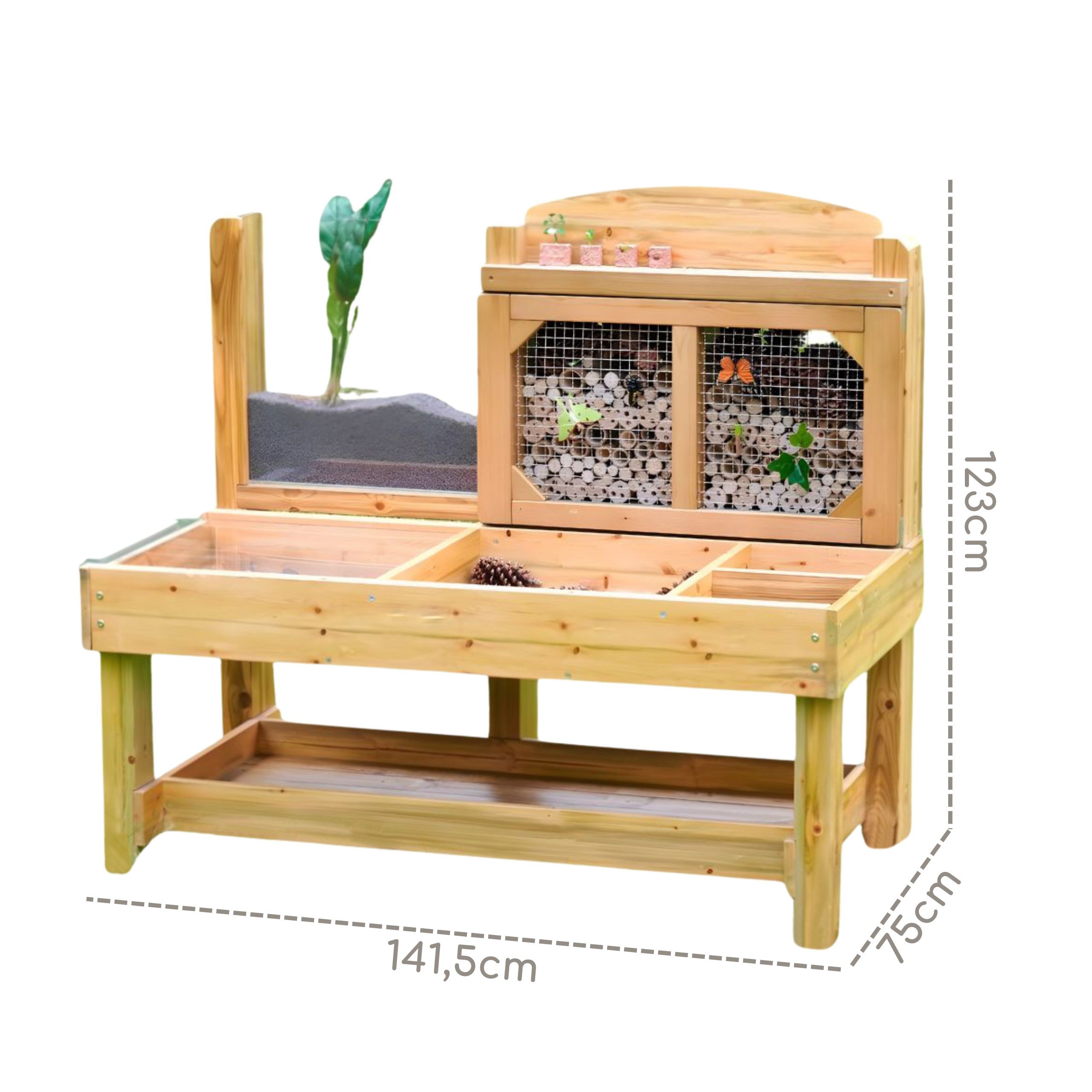 Masterkidz Drevená výskumná stanica pre hmyz a rastliny – Edukačný pozorovací stôl do záhrady