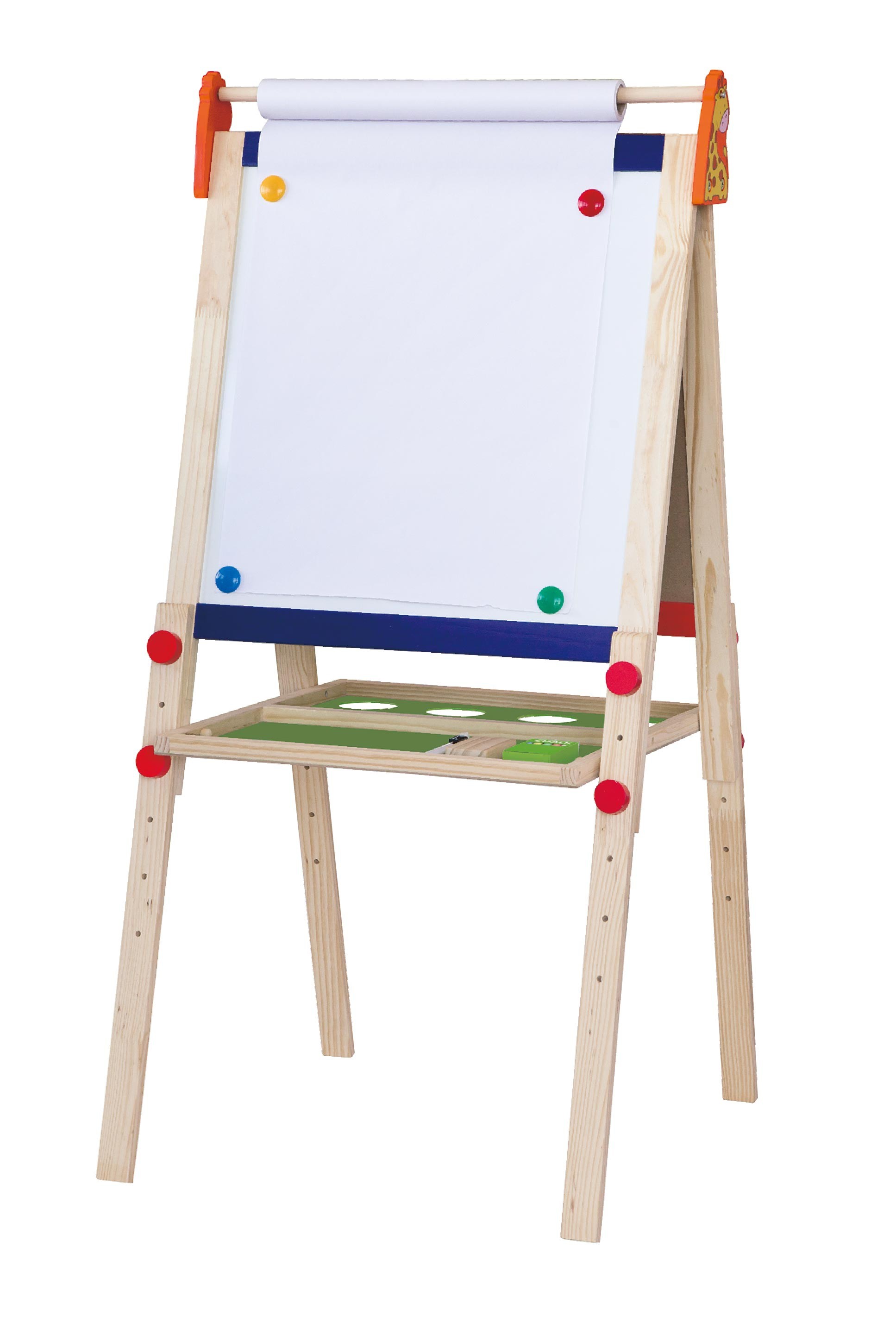 Multifunkčná drevená tabuľa od spoločnosti VIGA. Na jednej strane tabule môžete písať s kriedou a na druhej s umývateľnou fixkou. Pracovné plochy sú veľké a pohodlné, umiestnené na stabilnom stojane.