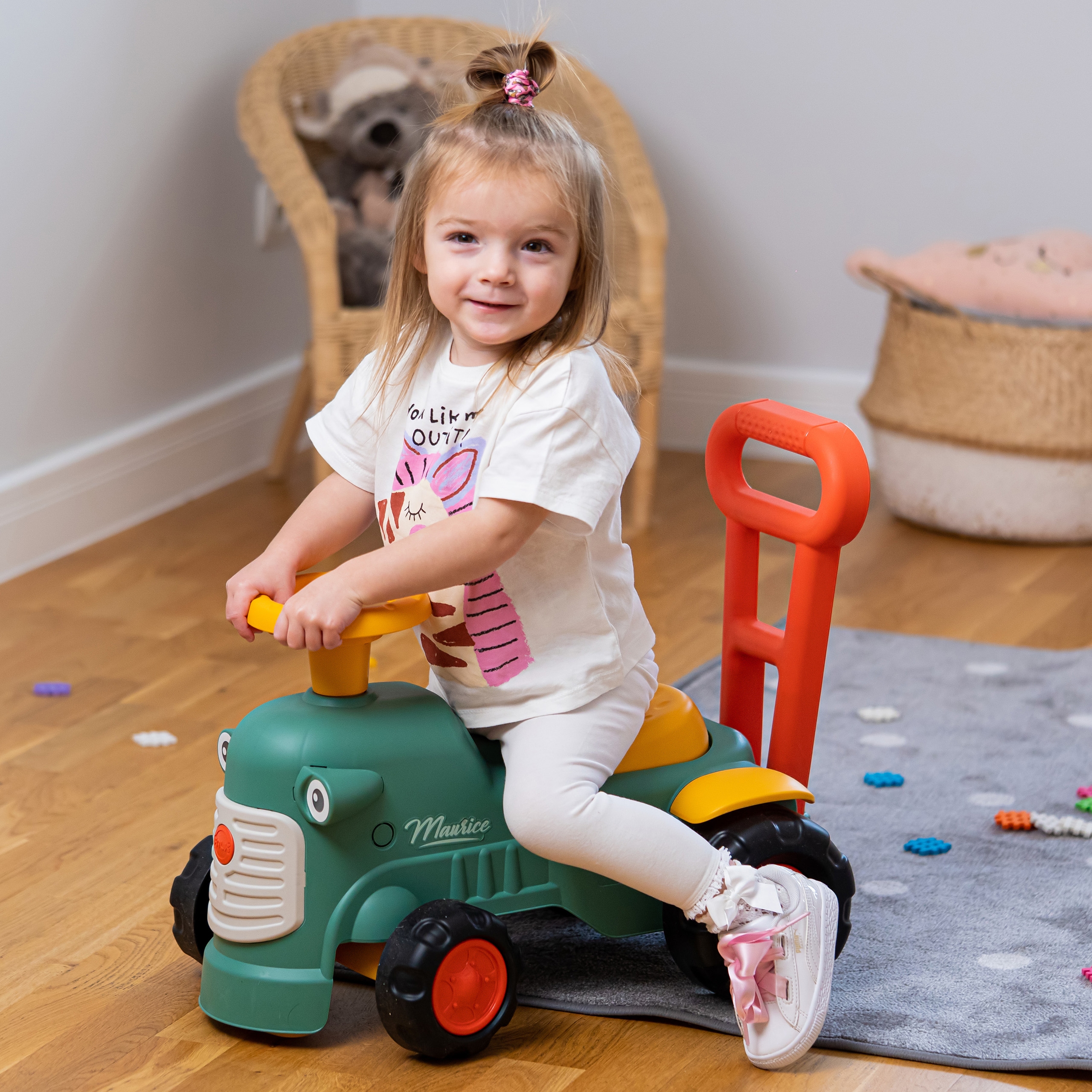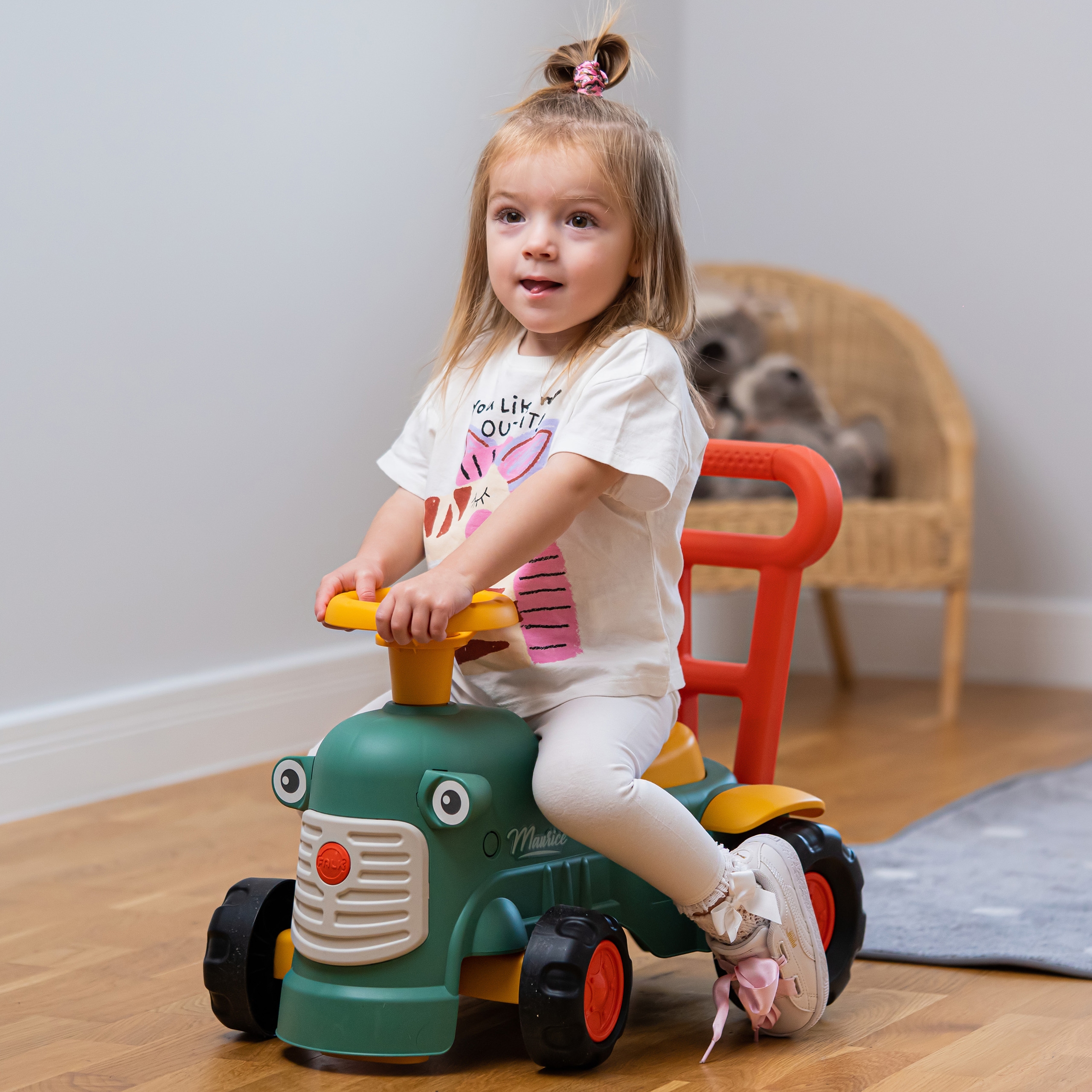 Maurice je očarujúci traktorík bez pedálov od francúzskej spoločnosti Falk. Žiarivé farby a zaoblené tvary potešia každé batoľa. Štartovanie traktora pomocou malého zvukového gombíka a klaksón na volante stimuluje motoriku a sluch dieťaťa. Pod sedadlom sa nachádza tajný úložný priestor.