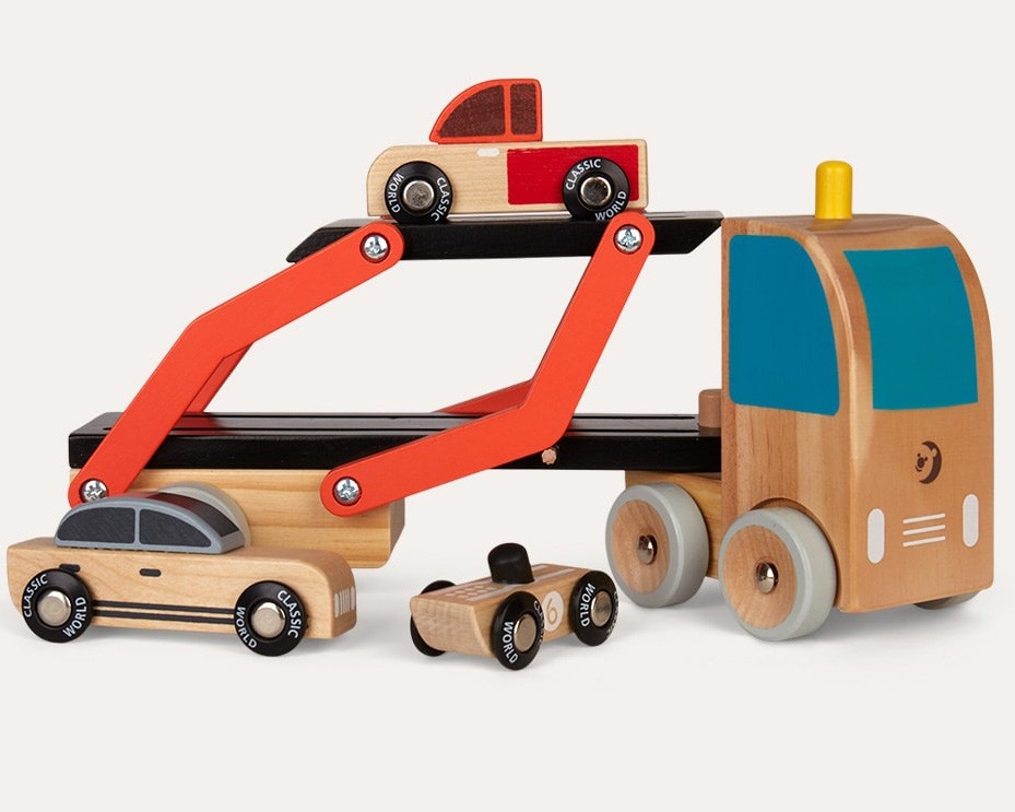 Drevené nákladné auto - odťahovka s autíčkami od spoločnosti Classic World.