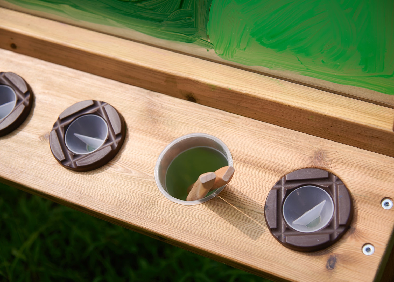 ✔️ Špeciálne miesta na farby, nádoby s vodou a štetce.