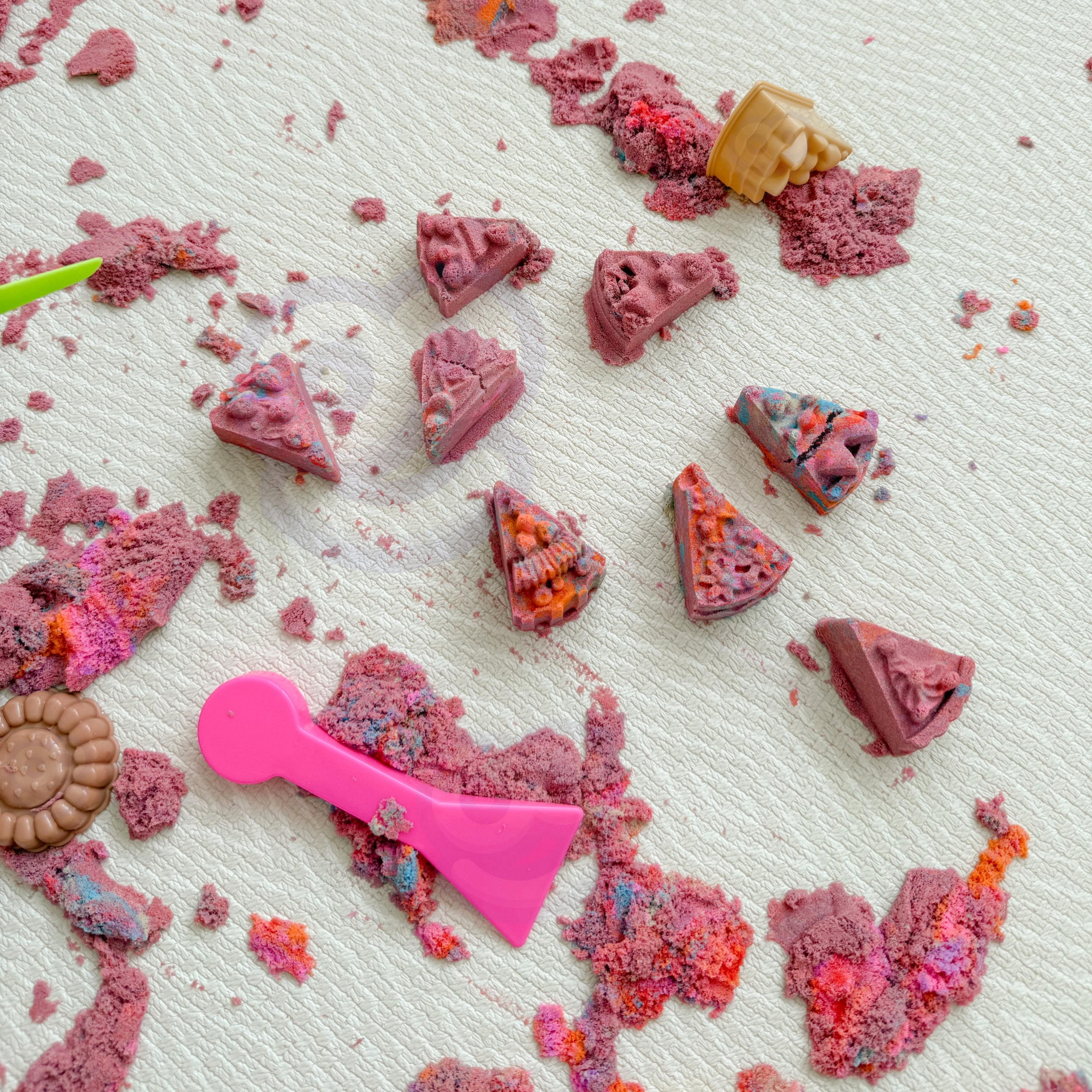 Preneste svet fantázie a sladkých dobrôt priamo do detskej izby. Tento magický piesok je neuveriteľne jemný a príjemný na dotyk, ideálny na miesenie, formovanie a vytváranie nekonečného množstva dobrôt. Vytvorte lahodnú zmrzlinu, farebné koláčiky, hot dogy, torty alebo čokoľvek, čo fantázia dovolí! Je to perfektný darček, ktorý rozvíja zmysly a kreativitu každého malého umelca.