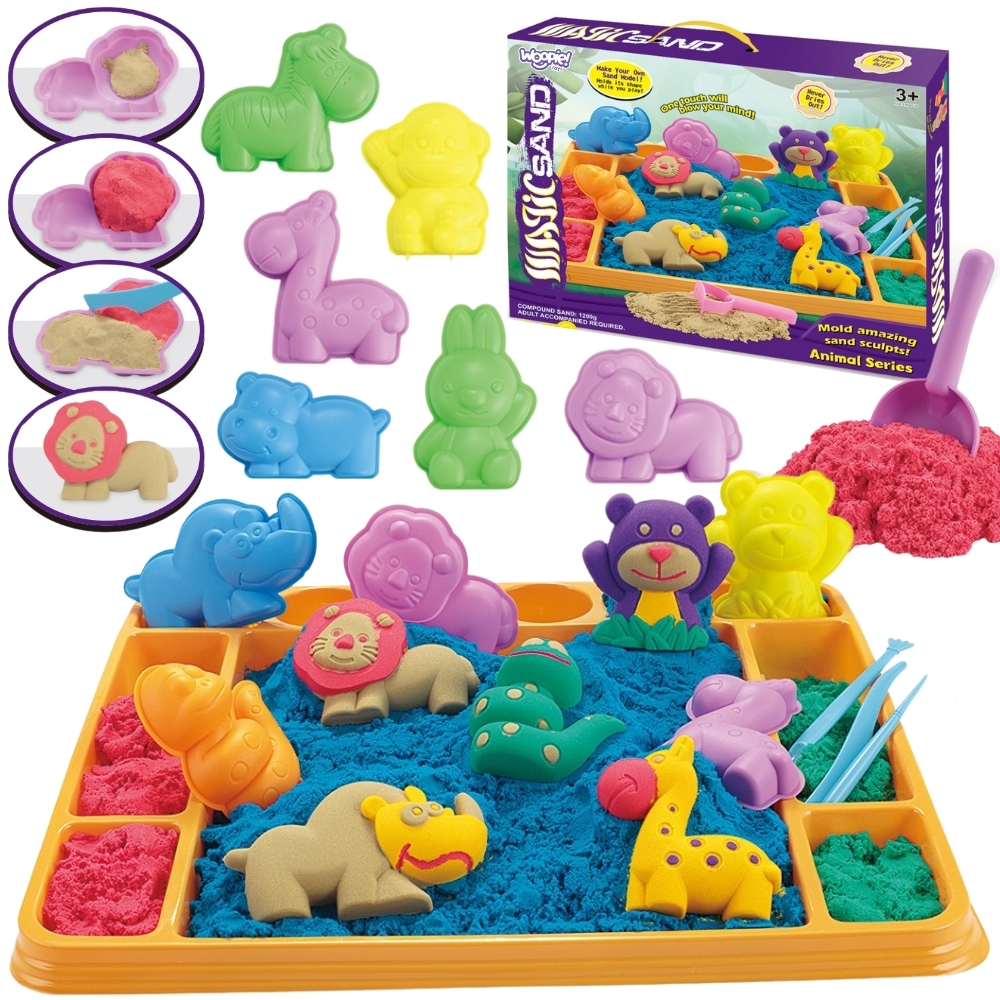 WOOPIE Kinetický Piesok Sada XXL ZOO Mini Pieskovisko s Formičkami 1,2 Kg