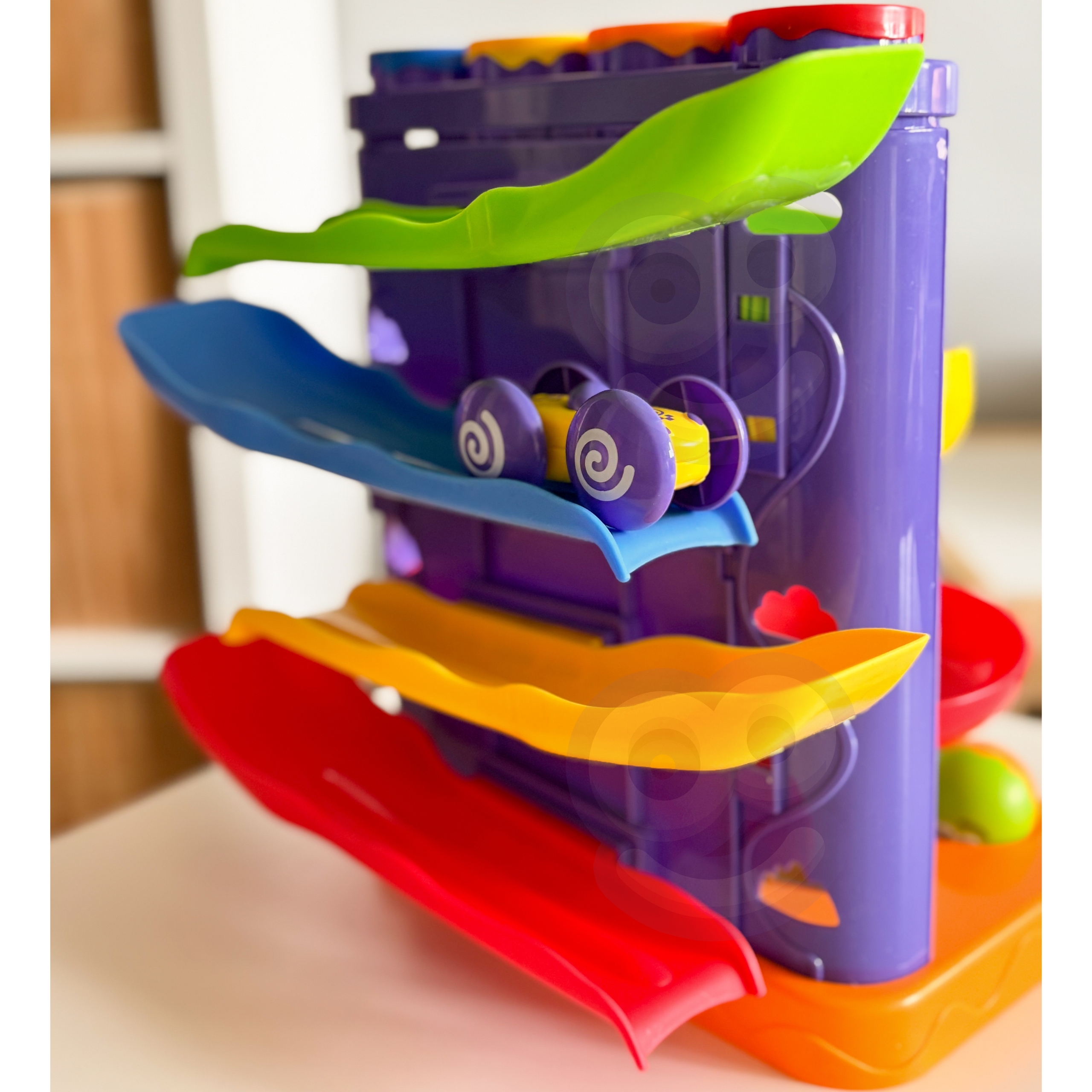 - 3v1 - guľôčková dráha, kladivo, šmykľavka a auto,