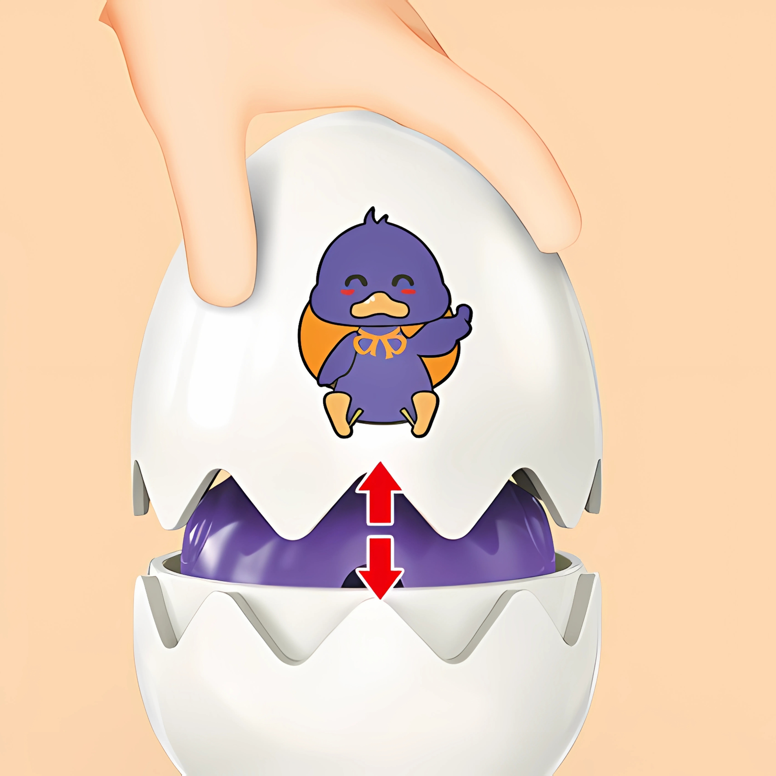 - Každé vajíčko sa skladá z dvoch častí: hornej škrupiny a spodnej škrupiny s figúrkou kuriatka.