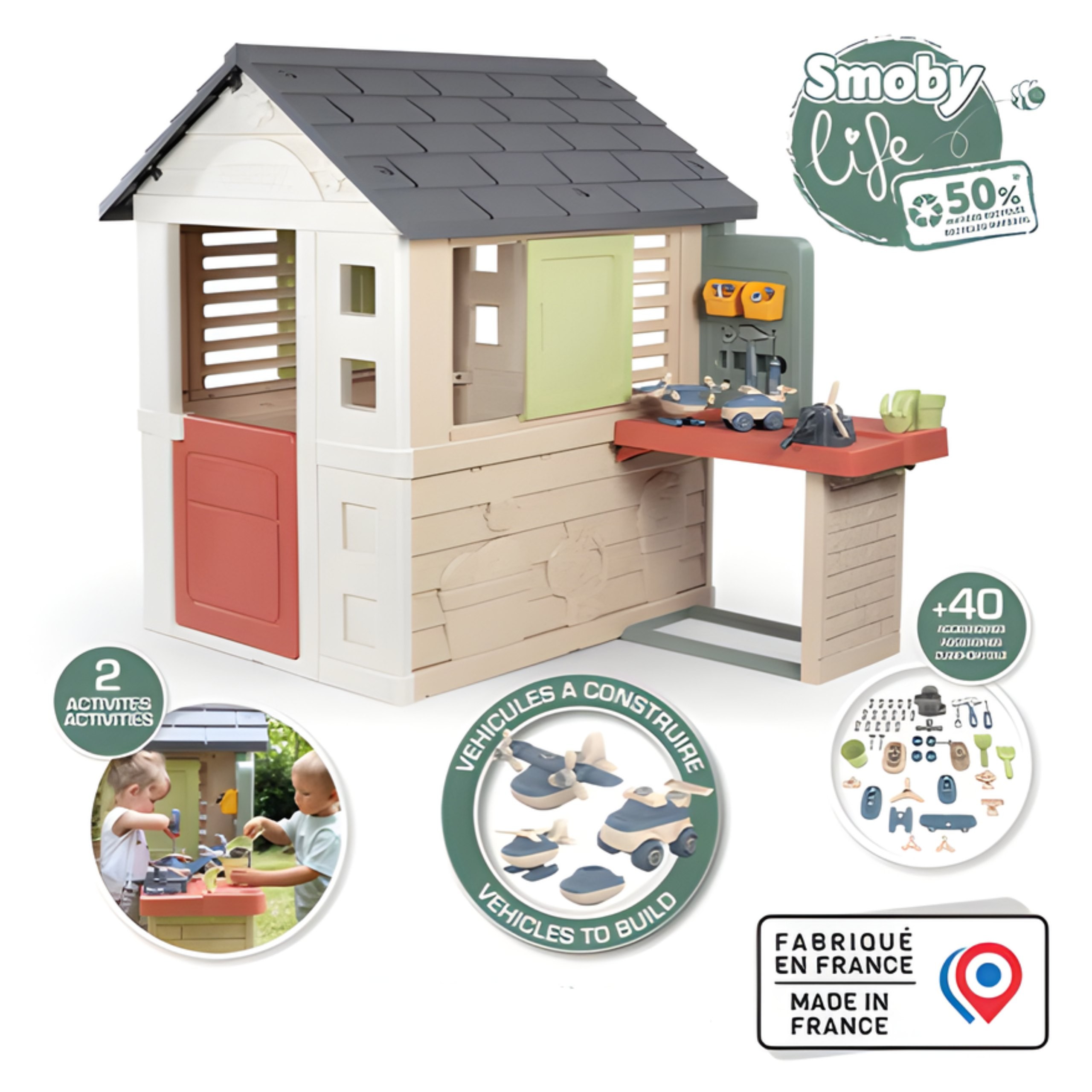 Záhradný domček Smoby s pracovnou dielňou je inovatívne herné centrum, ktoré spája klasickú hru v domčeku s fascinujúcim svetom majstrovania. Rieši problém s nudou na záhrade tým, že deťom ponúka nielen bezpečný úkryt, ale aj plnohodnotný pracovný pult s 39 kusmi náradia a konštrukčných dielikov. Tento mimoriadne odolný plastový domček s anti-UV filtrom je určený pre deti už od 2 rokov a predstavuje ideálne miesto na komplexný rozvoj jemnej motoriky, priestorovej predstavivosti a nekonečného hrania rolí na čerstvom vzduchu.