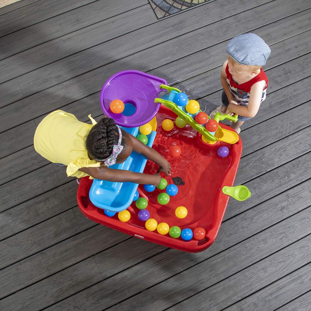 Vodný stôl a pieskovisko 2v1 od spoločnosti Step2 je dostatočne veľký na to, aby umožnil viacerým deťom hrať sa spolu naraz, podporovať rozvoj sociálnych zručností. Pridajte vodu do stola pre lepšiu zábavu s loptičkami. Od katapultov a dráhy, má tento detský stolík všetko potrebné na zábavu.