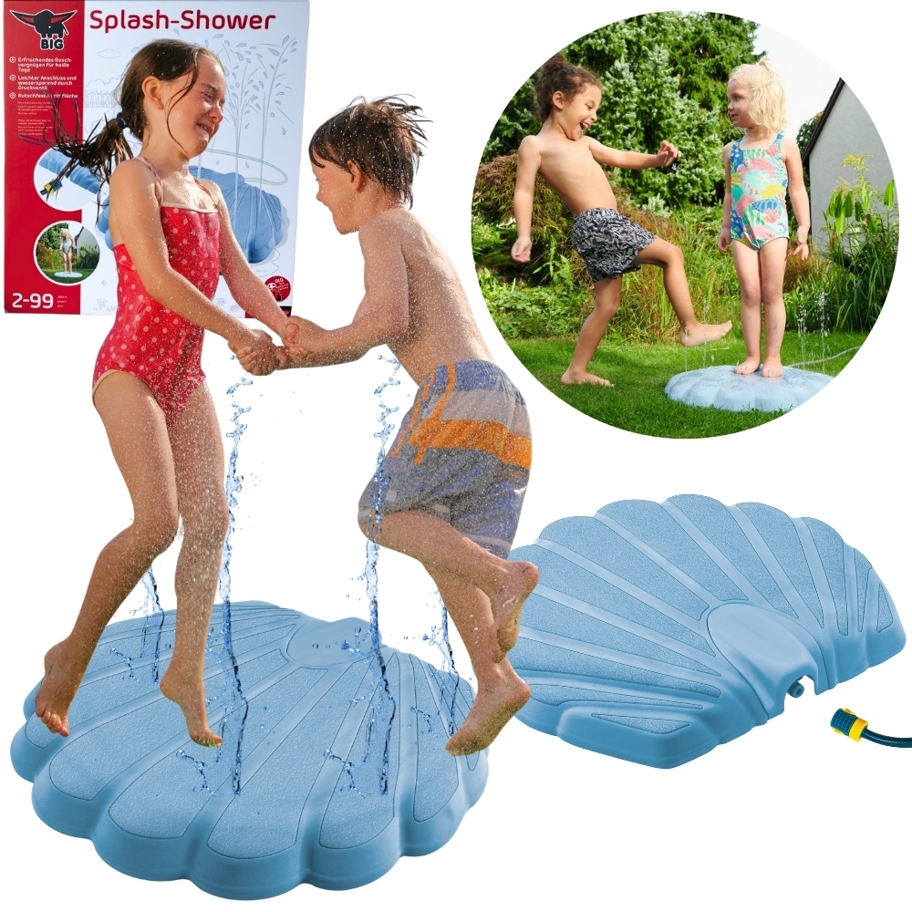 Vodný postrekovač v tvare mušle od nemeckej spoločnosti BIG je osviežujúca vodná zábava pre deti od 2 rokov. BIG Splash Shower je možné využiť mnohými spôsobmi vďaka svojej nízkej hmotnosti. Vďaka zabudovanému tlakovému ventilu ešte ušetríte vodu pri striekaní. Až po nastúpení na protišmykový nášľap voda strieka smerom nahor, tlak sa zmierni a prúd vody sa automaticky zastaví. Forma je vyrobená z odolného a ekologického plastu.