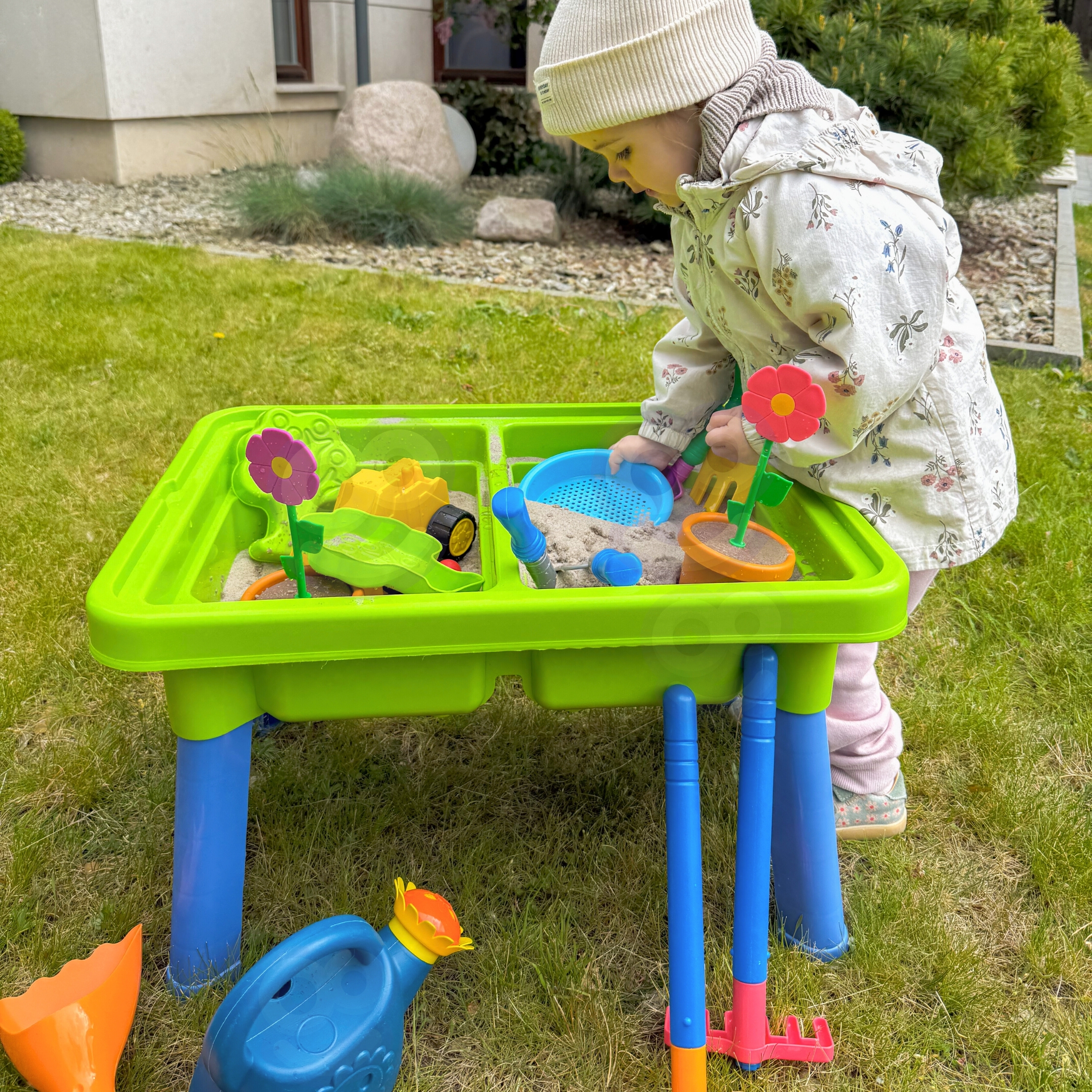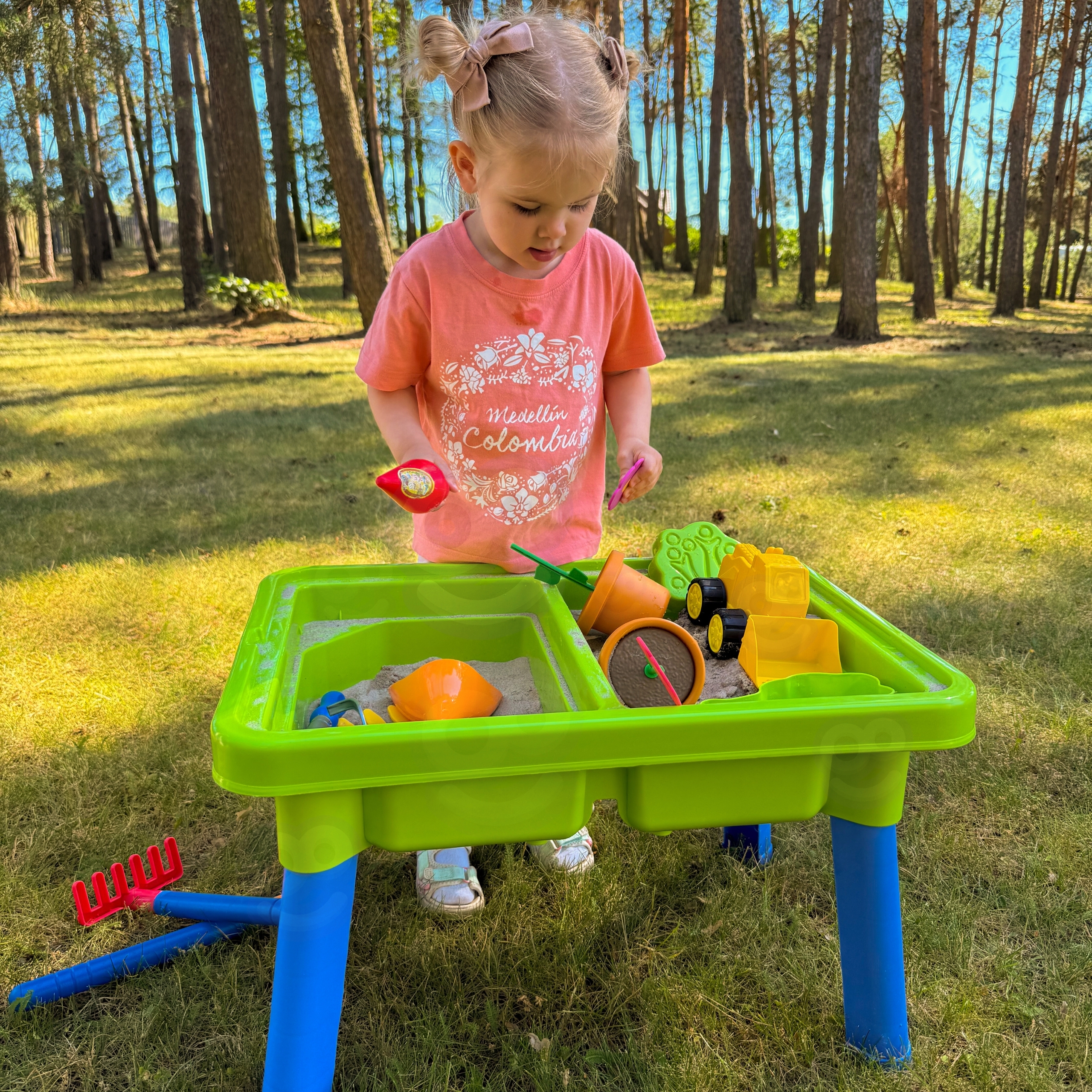 Vodný stôl s pieskoviskom 2v1 od spoločnosti WOOPIE je dokonalá hračka, ktorá deťom poskytne nespočetné hodiny zábavy s vodou a pieskom. Sada obsahuje až 13 rôznych doplnkov, ako sú: formičky, krhlička, bager a dve lopatky. Stôl má dve nádžky - jednu je možné naplniť vodou a druhú pieskom, čo umožňuje kreatívnu hru kdekoľvek. Súprava je ideálna ako doma, tak aj na pláži alebo v pieskovisku. Táto všestranná súprava umožňuje deťom vytvárať neobmedzené herné scenáre, stimuluje ich predstavivosť a rozvíja manuálne zručnosti. Ideálne na kreatívnu hru v interiéri aj exteriéri!