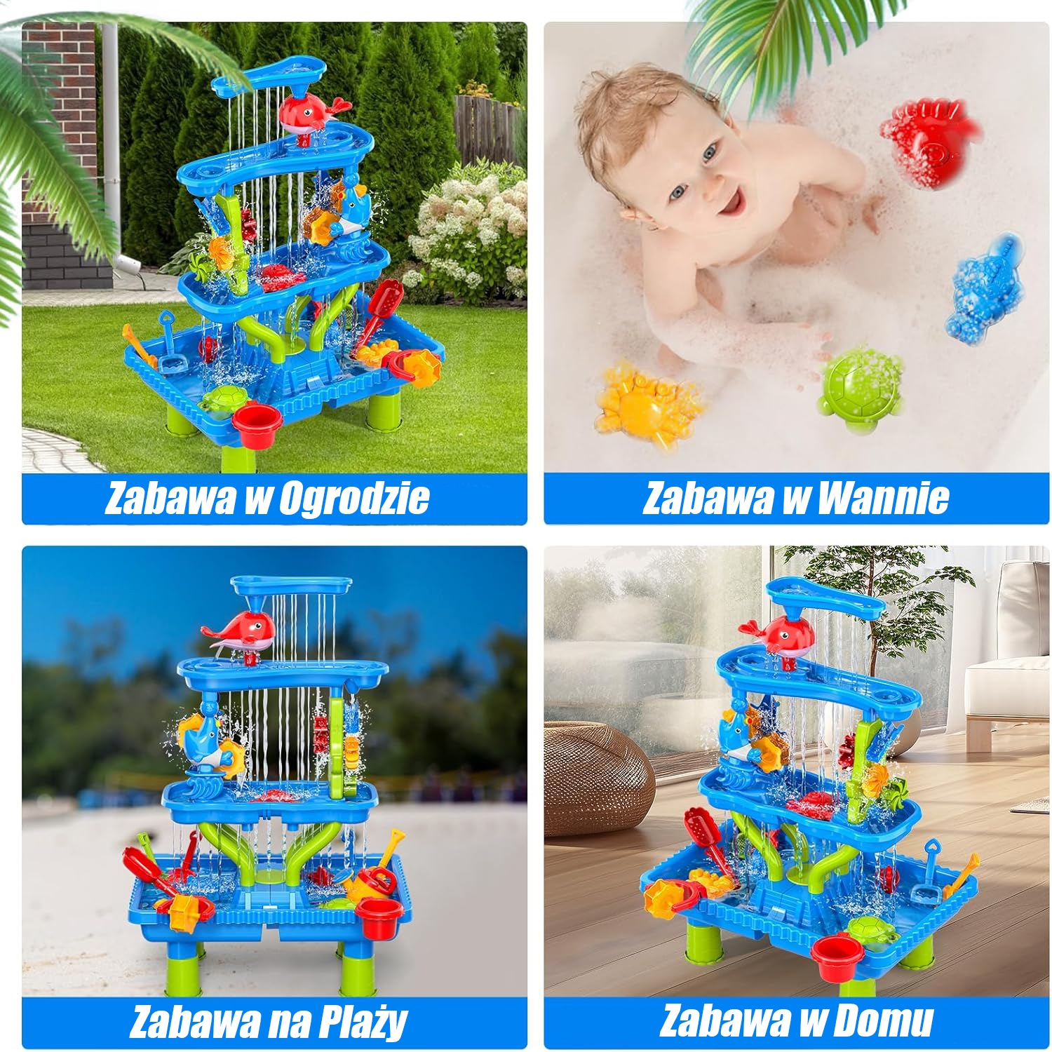 - Multifunkčnosť 4 v 1: Vodný stôl, pieskovisko, plážová súprava a hračka do kúpeľa.