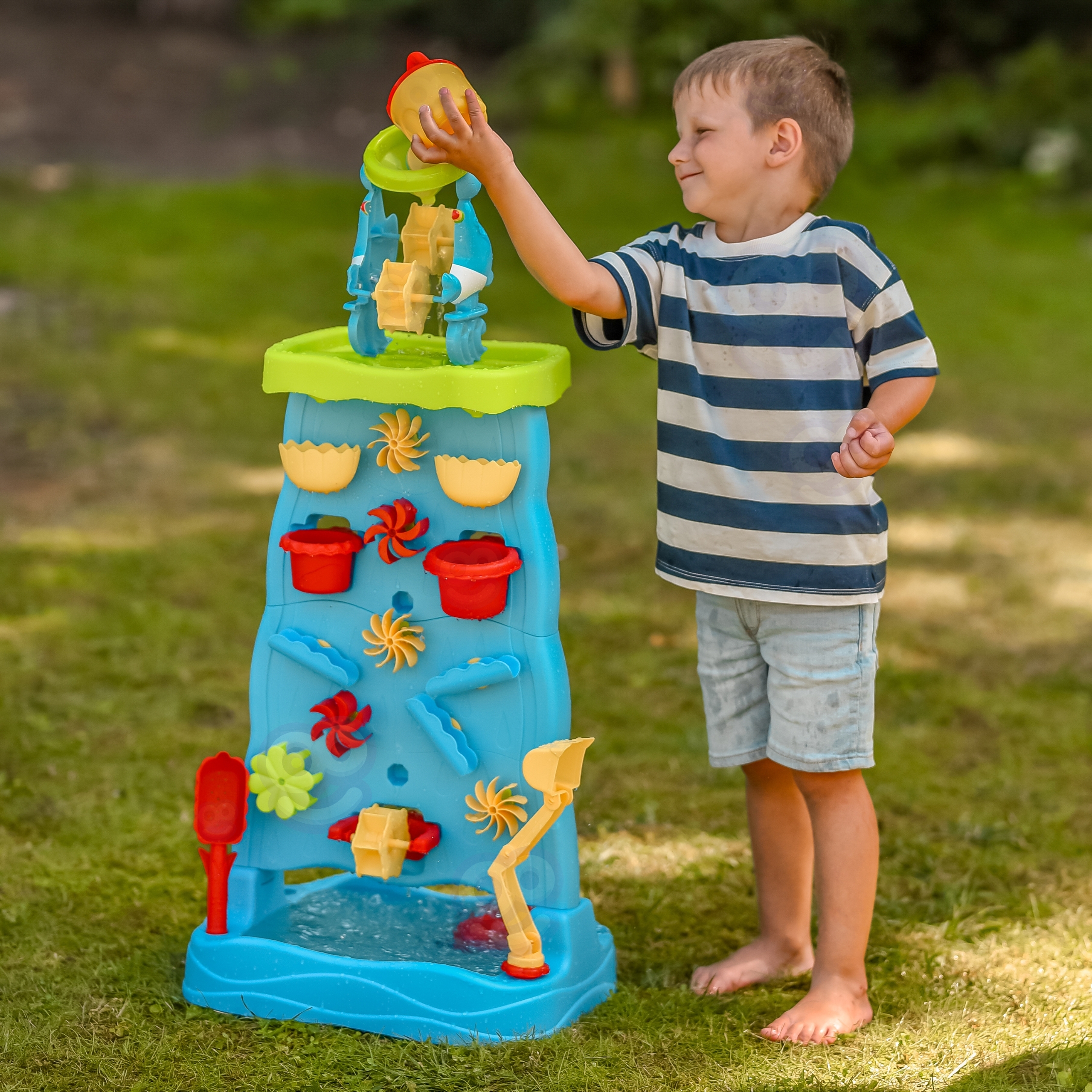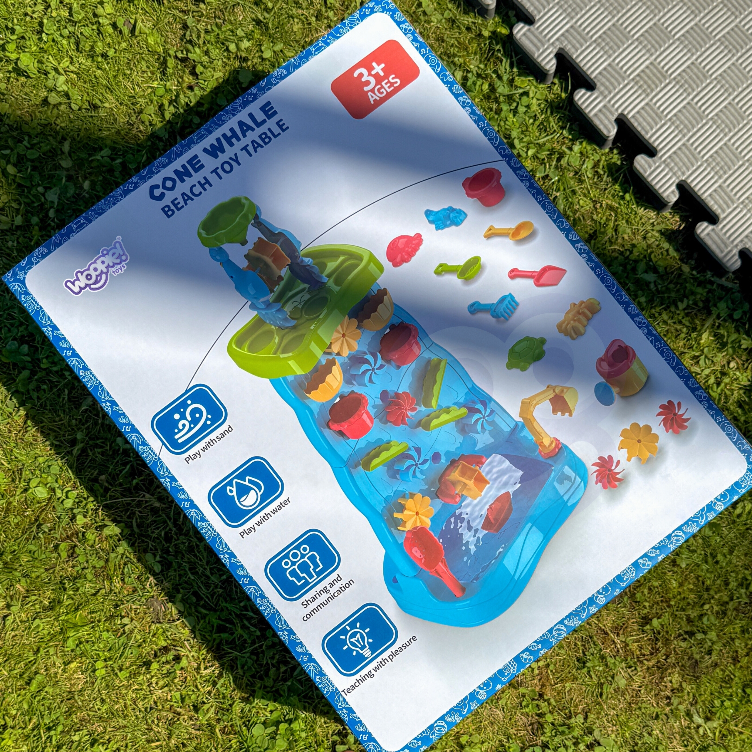 Vodný stôl Woopie s obojstrannou vodnou stenou je jedinečná hračka, ktorá premení každú záhradu alebo pláž na miesto plné smiechu a kreatívnej hry. Vďaka množstvu farebných doplnkov, pohyblivých mlynčekov a nádob môžu deti experimentovať s vodou a pieskom, rozvíjať si manuálne zručnosti a predstavivosť. Jeho jednoduchý dizajn a veľkosť ho robia pohodlným a atraktívnym, a to aj pre viac detí naraz.