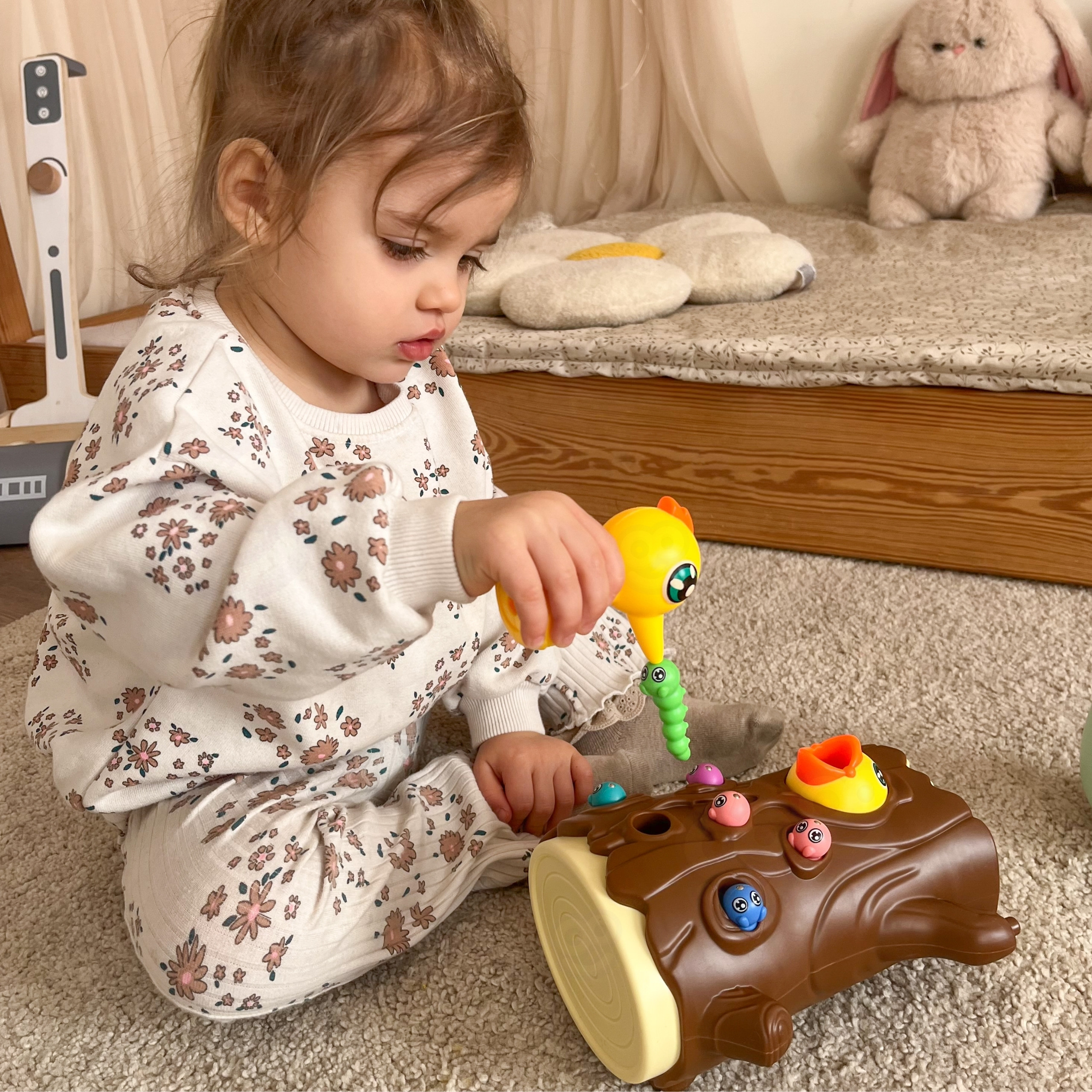 Interaktívna hra na zručnosť Chytanie Červíkov od spoločnosti WOOPIE je skvelý spôsob, ako tráviť čas spoločne so svojimi priateľmi. Jednoduché pravidlá a intuitívne ovládanie znamenajú, že hru môže hrať takmer každý. Hra spočíva v tom, že červíky ukryté v dierach na strome chytíte pomocou vtáčika s magnetom a potom ich vložíte kuriatku do zobáka.
