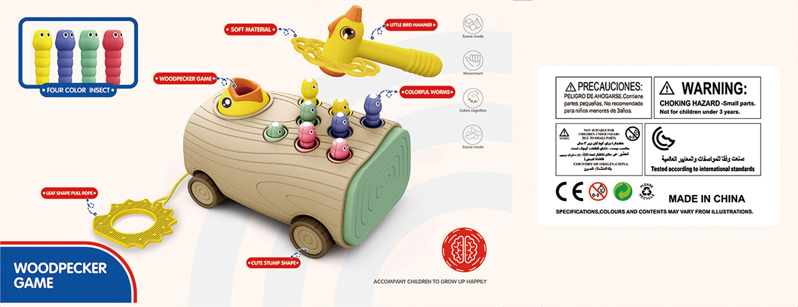 Interaktívna hra na zručnosť - Zatĺkanie Červíkov 3 v 1 od spoločnosti WOOPIE je skvelý spôsob, ako zabaviť dieťa hrou. Hračka môže sprevádzať dieťa v prvých fázach života. Súprava obsahuje bezpečné detské kladivko na zatĺkanie červíkov. Pre staršie deti bude perfektnou voľbou hra na chytanie červov a kŕmenie kuriatka v kmeni stromu. Jednoduché pravidlá a intuitívne ovládanie znamenajú, že ju môže hrať takmer každý.