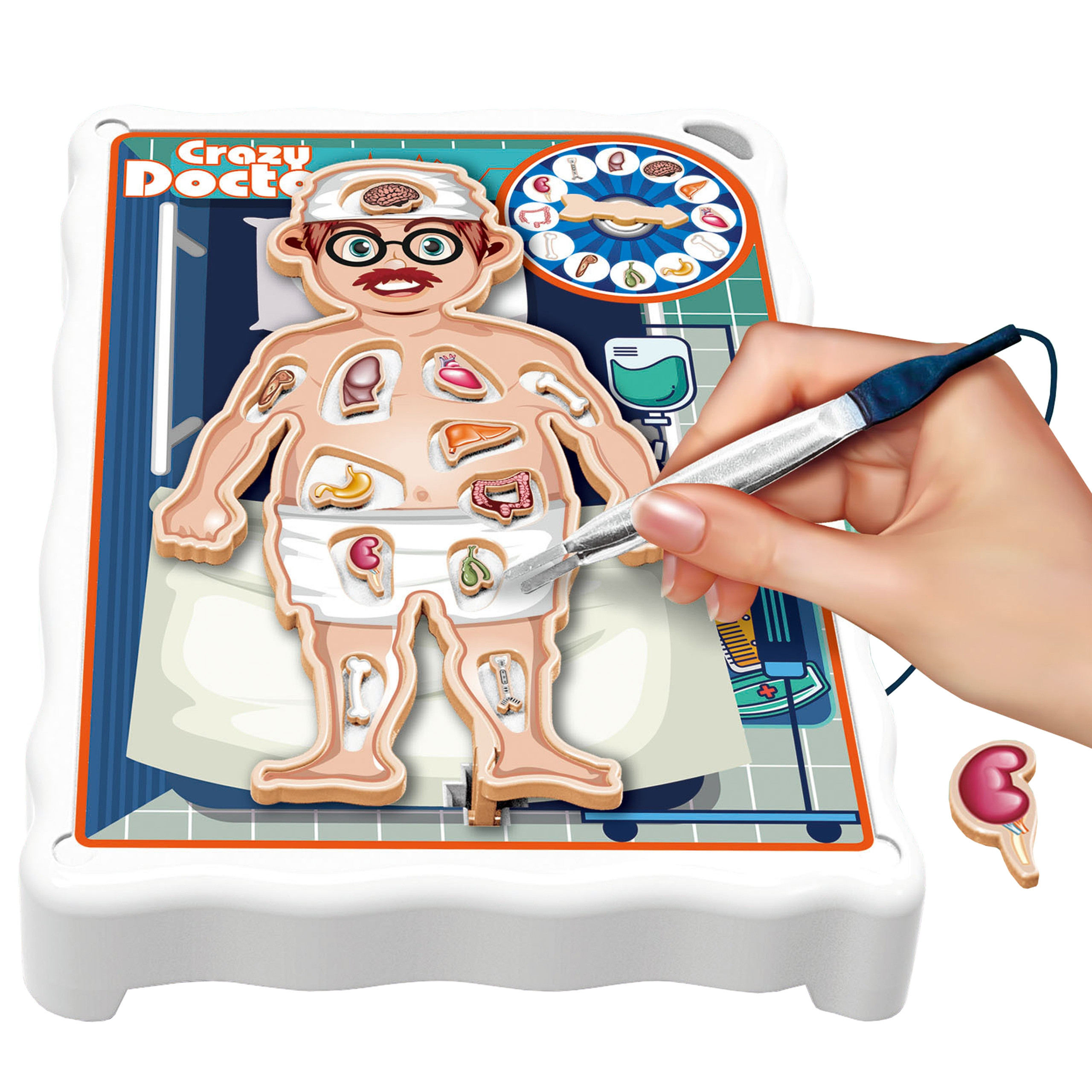 Detská hra Bláznivý doktor od spoločnosti WOOPIE. Hra určená pre deti od 4 rokov, v ktorej sa zahráme na lekára ktorý operuje. Orgány vložíme pacientovi a potom otáčaním kolieska zistíme, ktorý orgán potrebujeme „odstrániť“. Musí to byť vykonané veľmi presne, pretože akonáhle sa dotkneme pacientovho orgánu, začne sa triasť, čo vedie k porážke. Hra rozvíja koordináciu oko-ruka, zlepšuje presnosť, trpezlivosť a koncentráciu.
